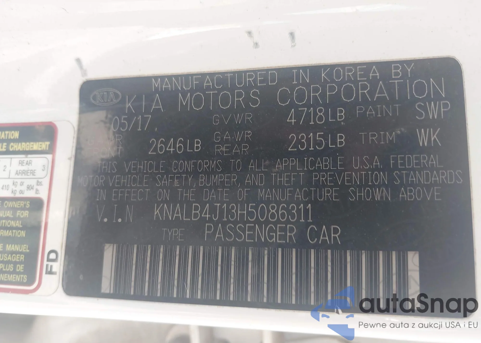 Samochód Kia Cadenza 2017 (VIN KNALB4J13H5086311) ma dokumenty uniemożliwiające rejestrację. Mogą pojawić się trudności przy eksporcie i rejestracji. Skontaktuj się z ekspertami AutaSnap w celu znalezienia alternatywy.