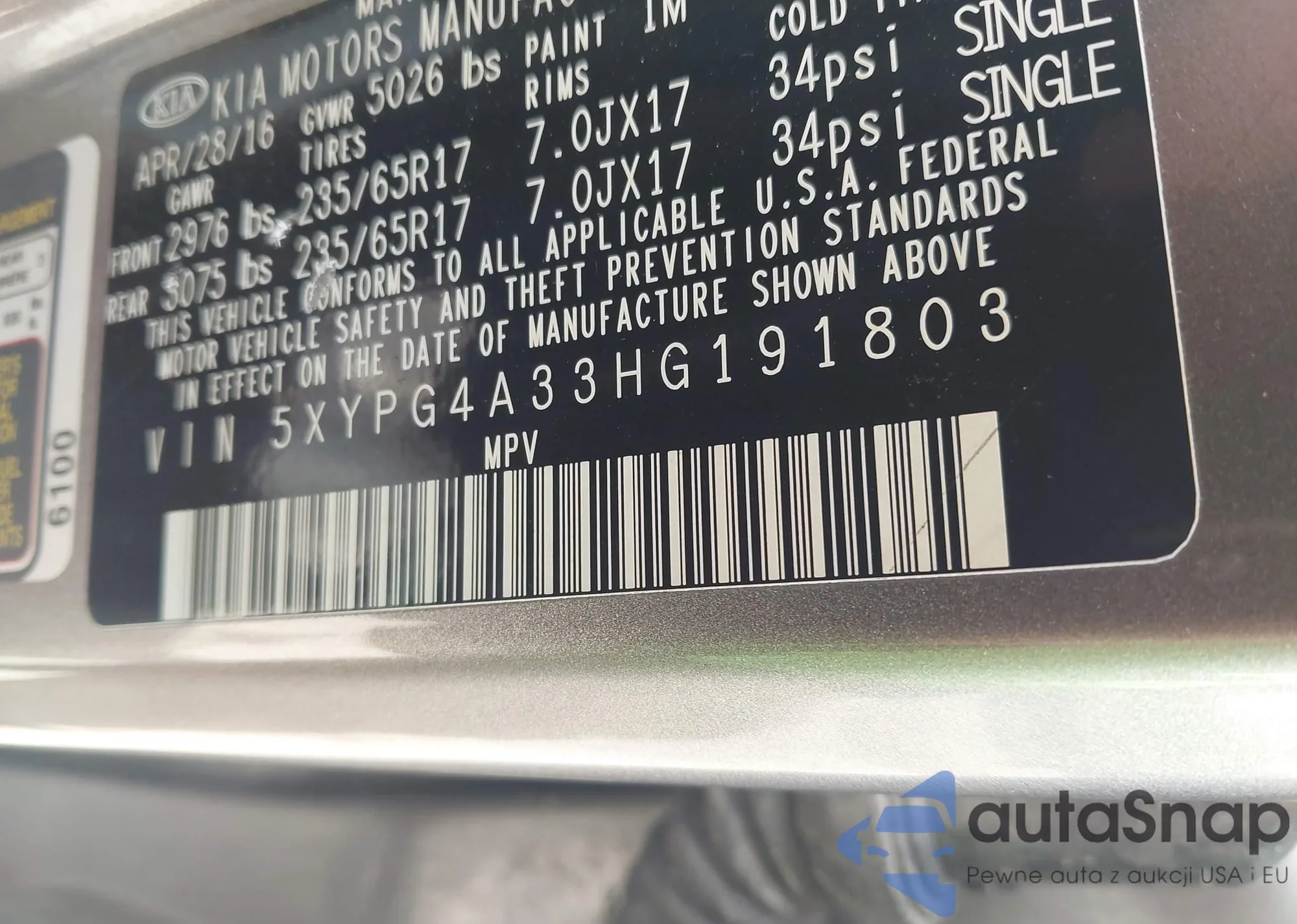 VIN: 5XYPG4A33HG191803