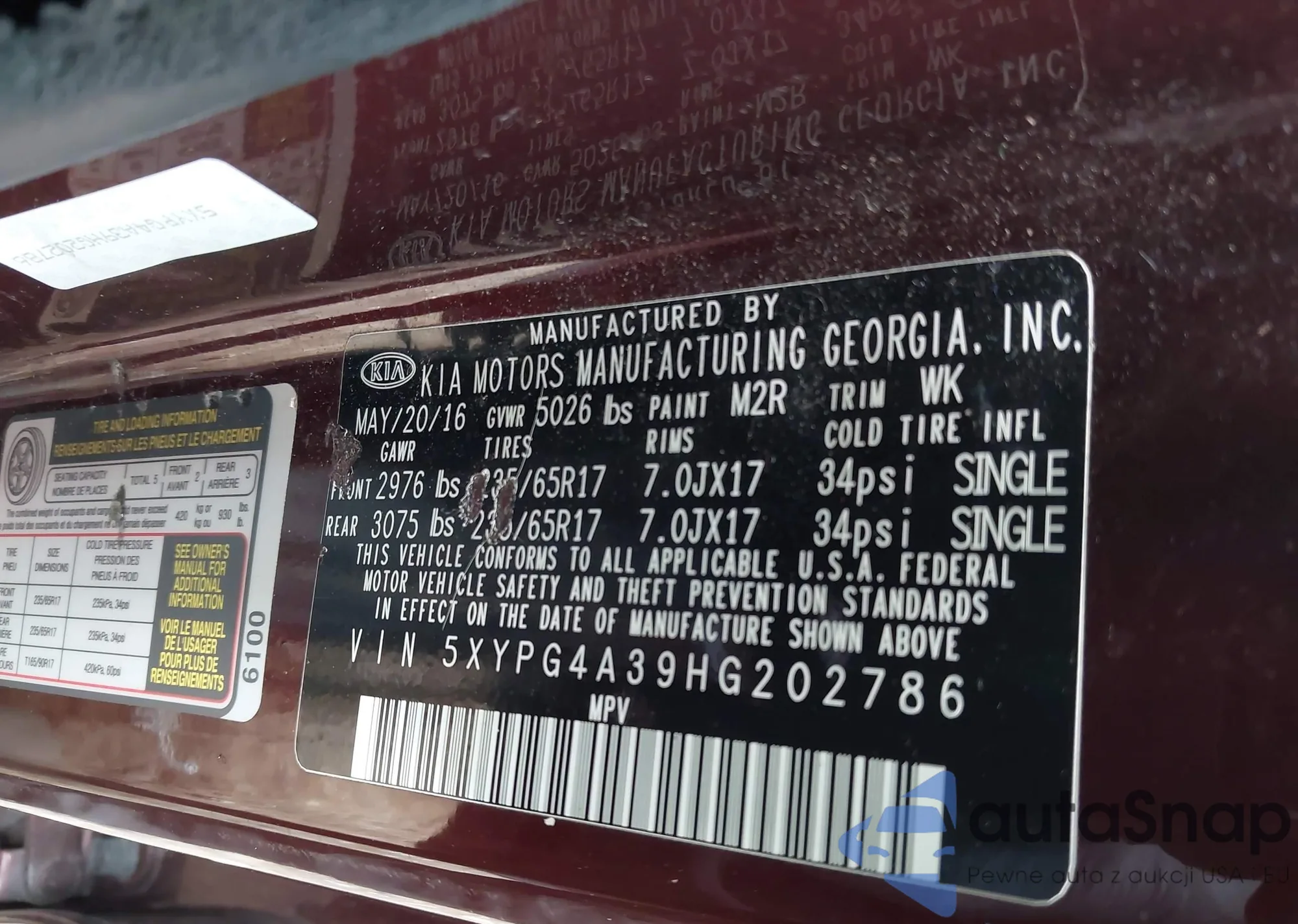 Samochód Kia Sorento 2017 (VIN 5XYPG4A39HG202786) nie był wcześniej licytowany. Dokumenty są czyste, przebieg odpowiada lub jest niższy niż średnia rynku. Sprzedaje go firma ubezpieczeniowa – polecamy zakup. Dostawa do portu zajmie ok. 6–8 tygodni.