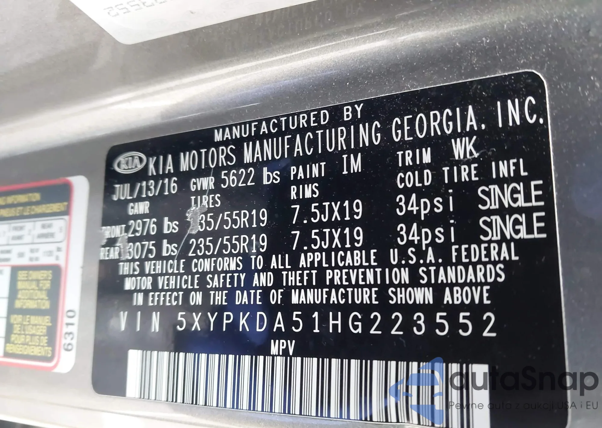 Samochód Kia Sorento 2017 (VIN 5XYPKDA51HG223552) nie był wcześniej licytowany. Dokumenty są czyste, przebieg odpowiada lub jest niższy niż średnia rynku. Sprzedaje go firma ubezpieczeniowa – polecamy zakup. Dostawa do portu zajmie ok. 6–8 tygodni.