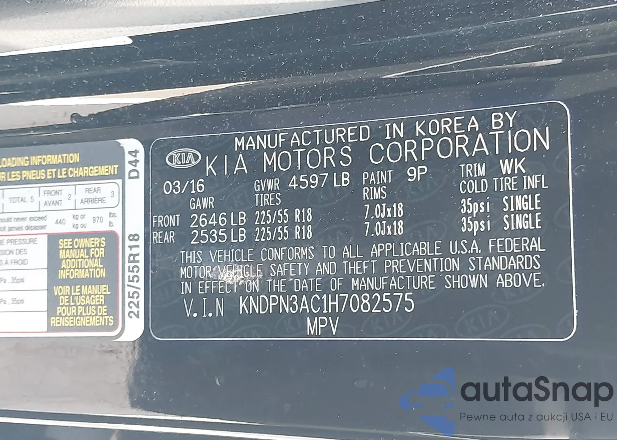 • VIN: KNDPN3AC1H7082575