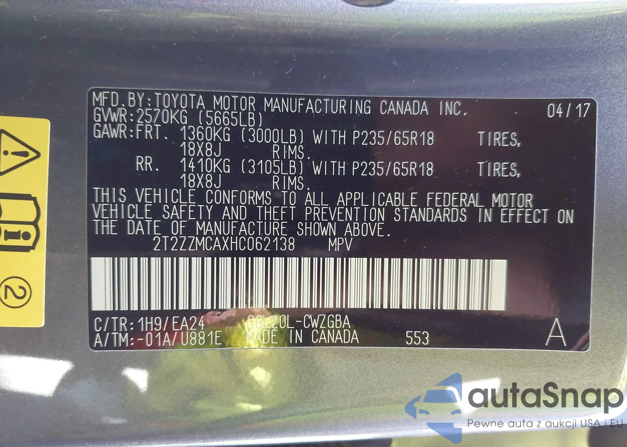 VIN: 2T2ZZMCAXHC062138