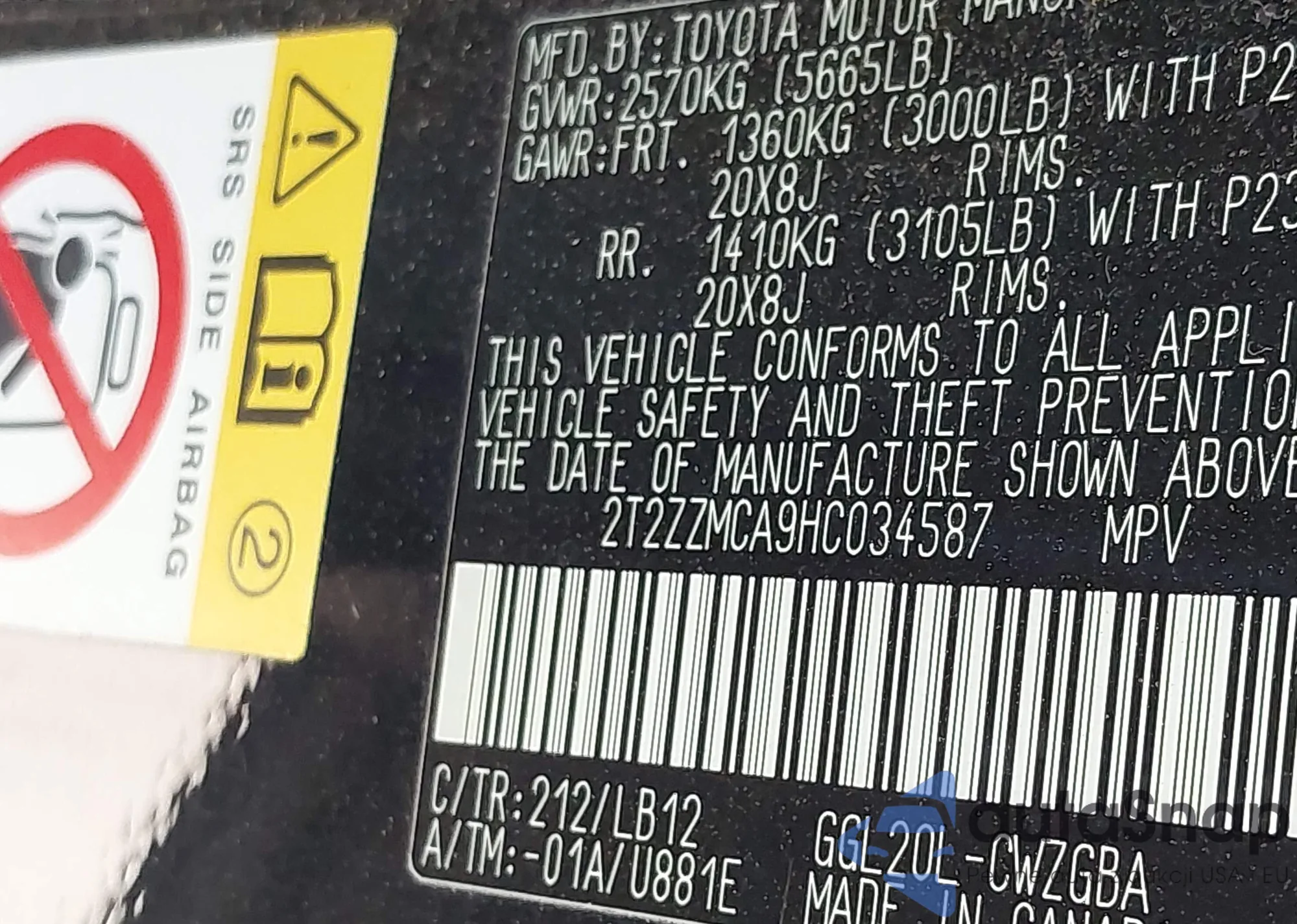 VIN: 2T2ZZMCA9HC034587