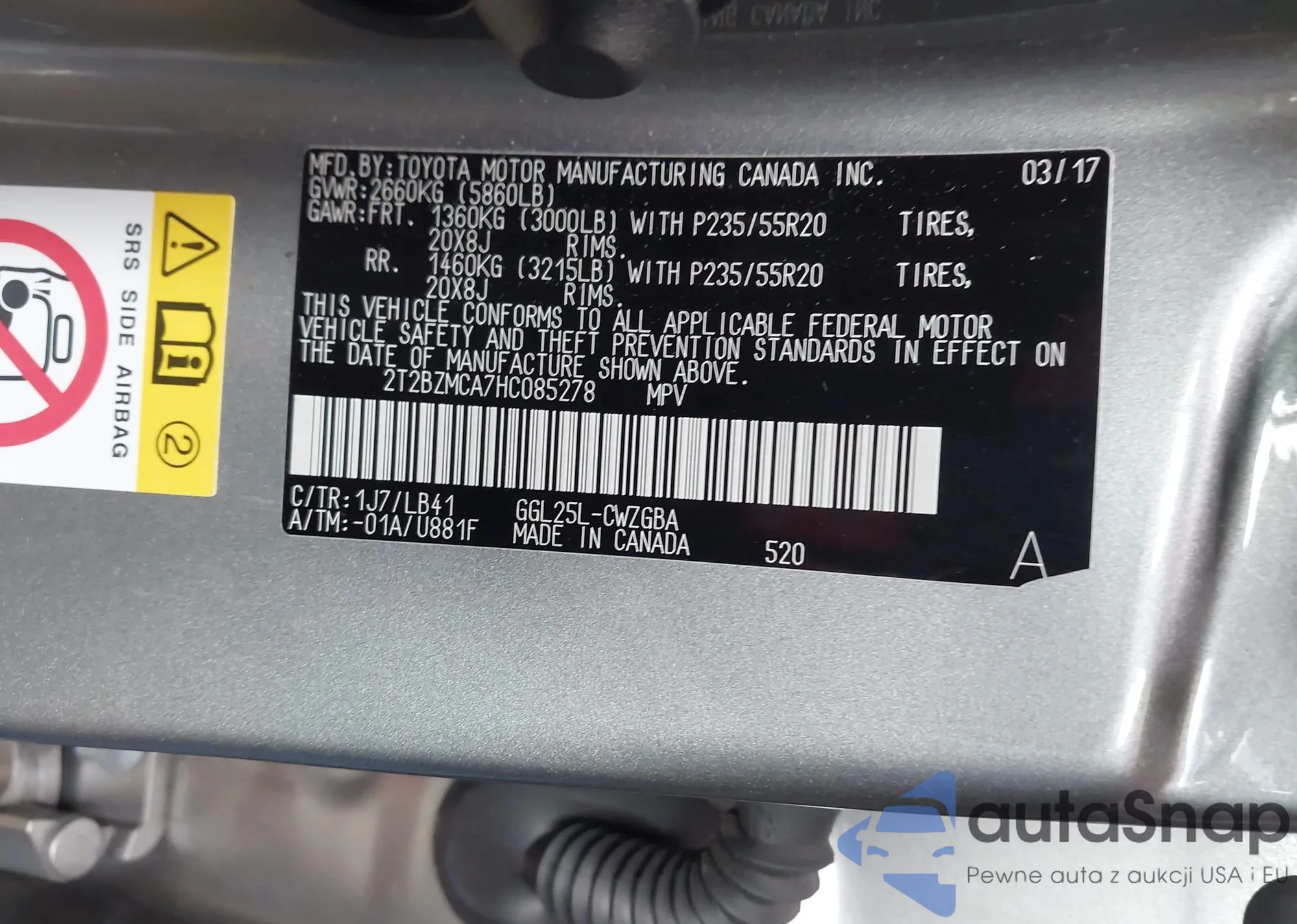 VIN: 2T2BZMCA7HC085278