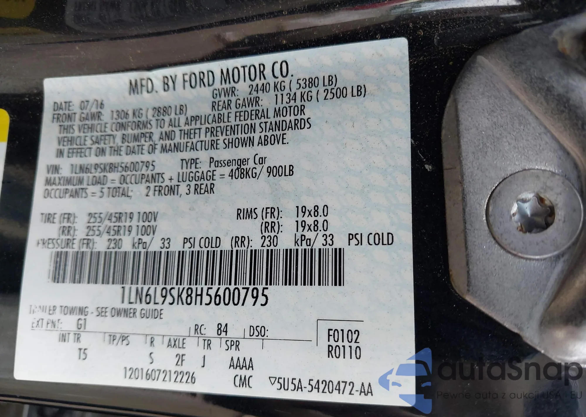 • VIN: 1LN6L9SK8H5600795