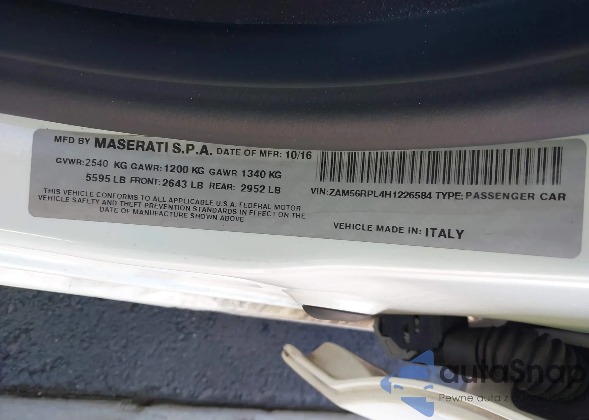 VIN: ZAM56RPL4H1226584