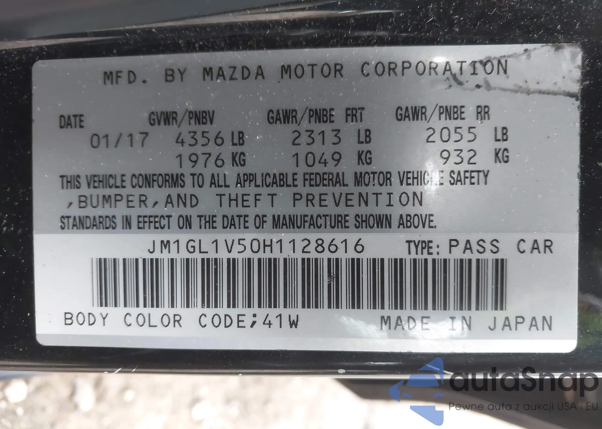 • VIN: JM1GL1V50H1128616