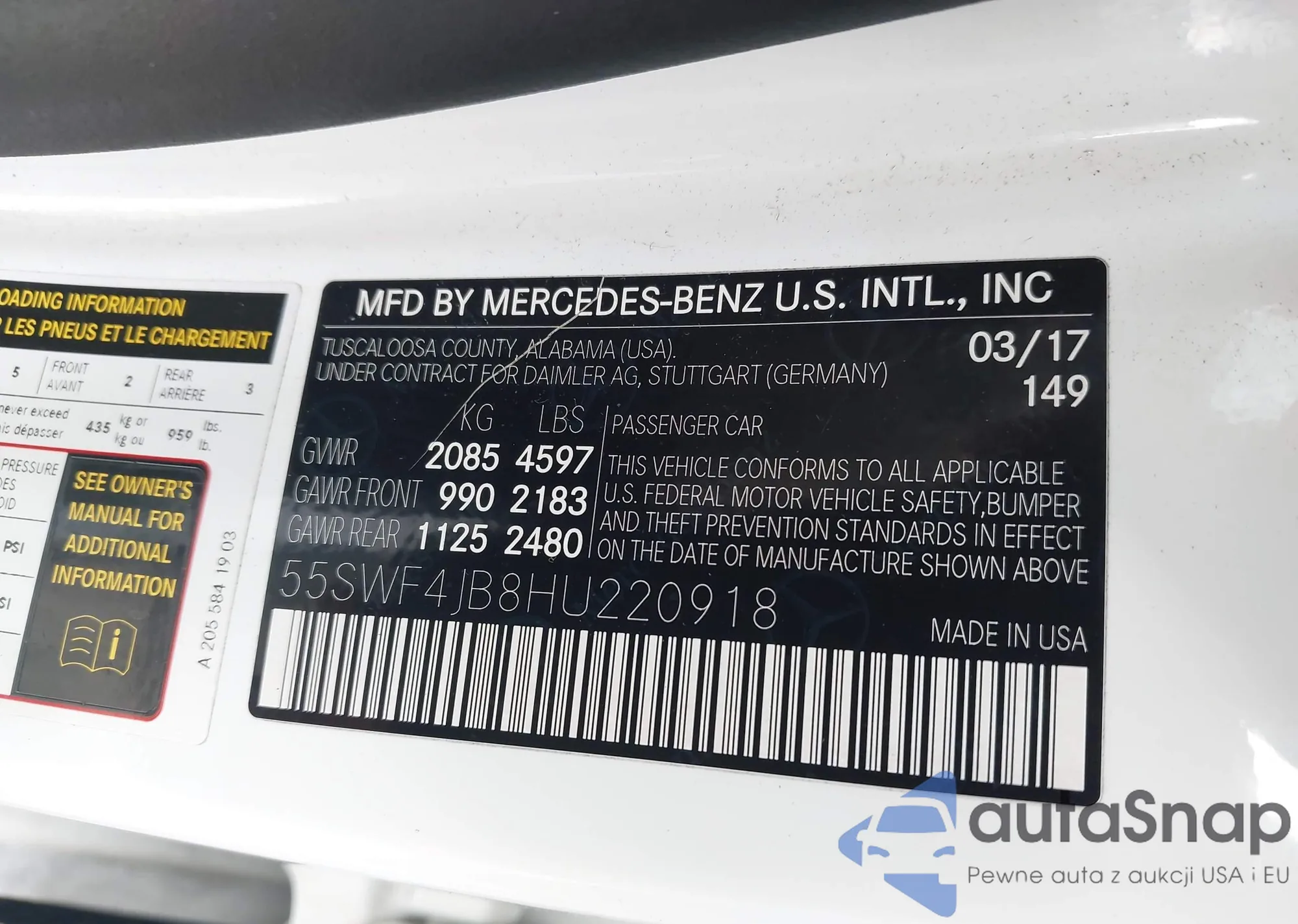 VIN: 55SWF4JB8HU220918