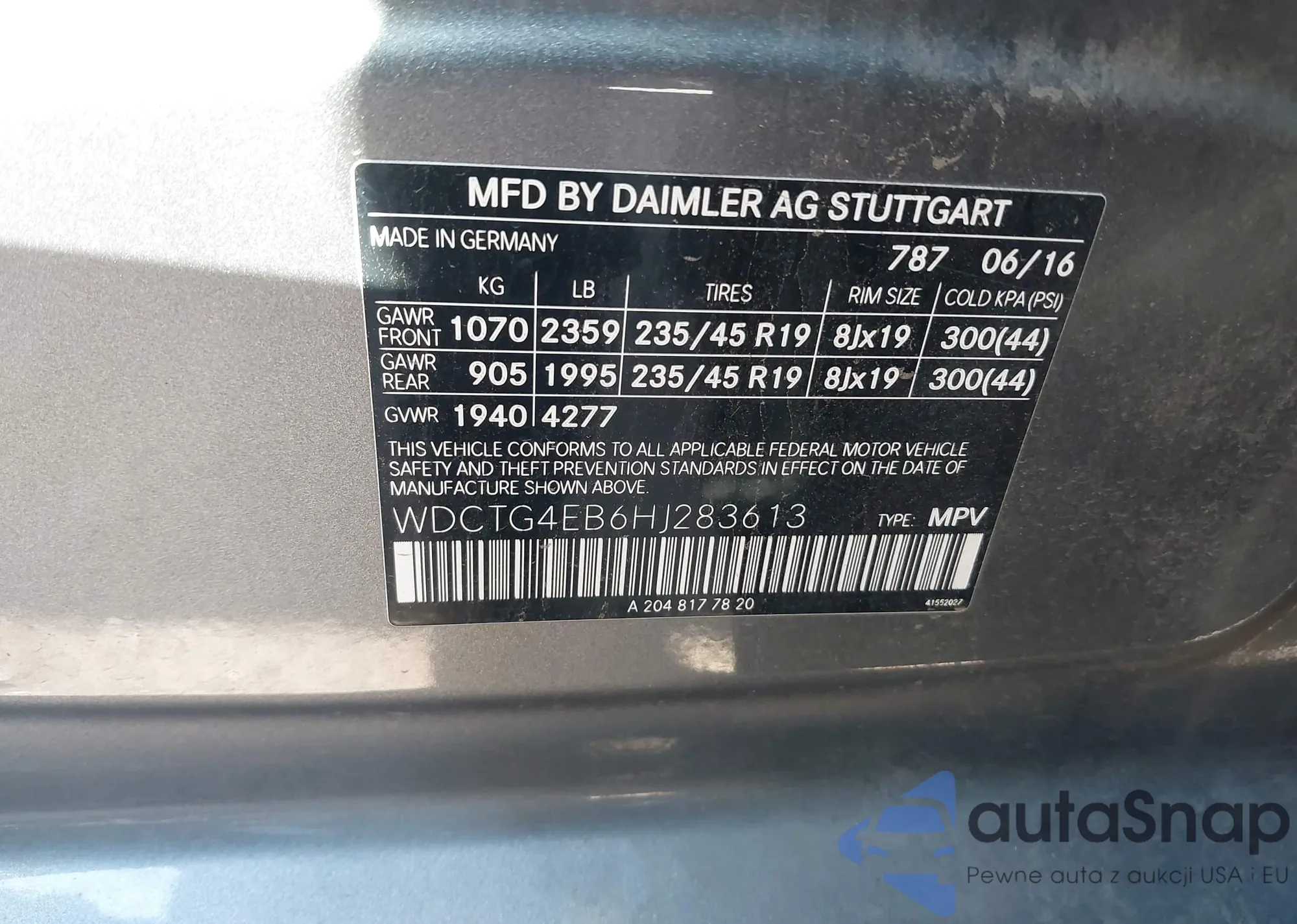 VIN: WDCTG4EB6HJ283613