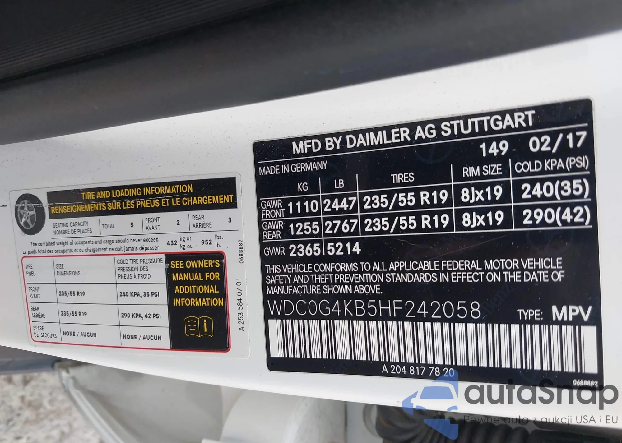VIN: WDC0G4KB5HF242058