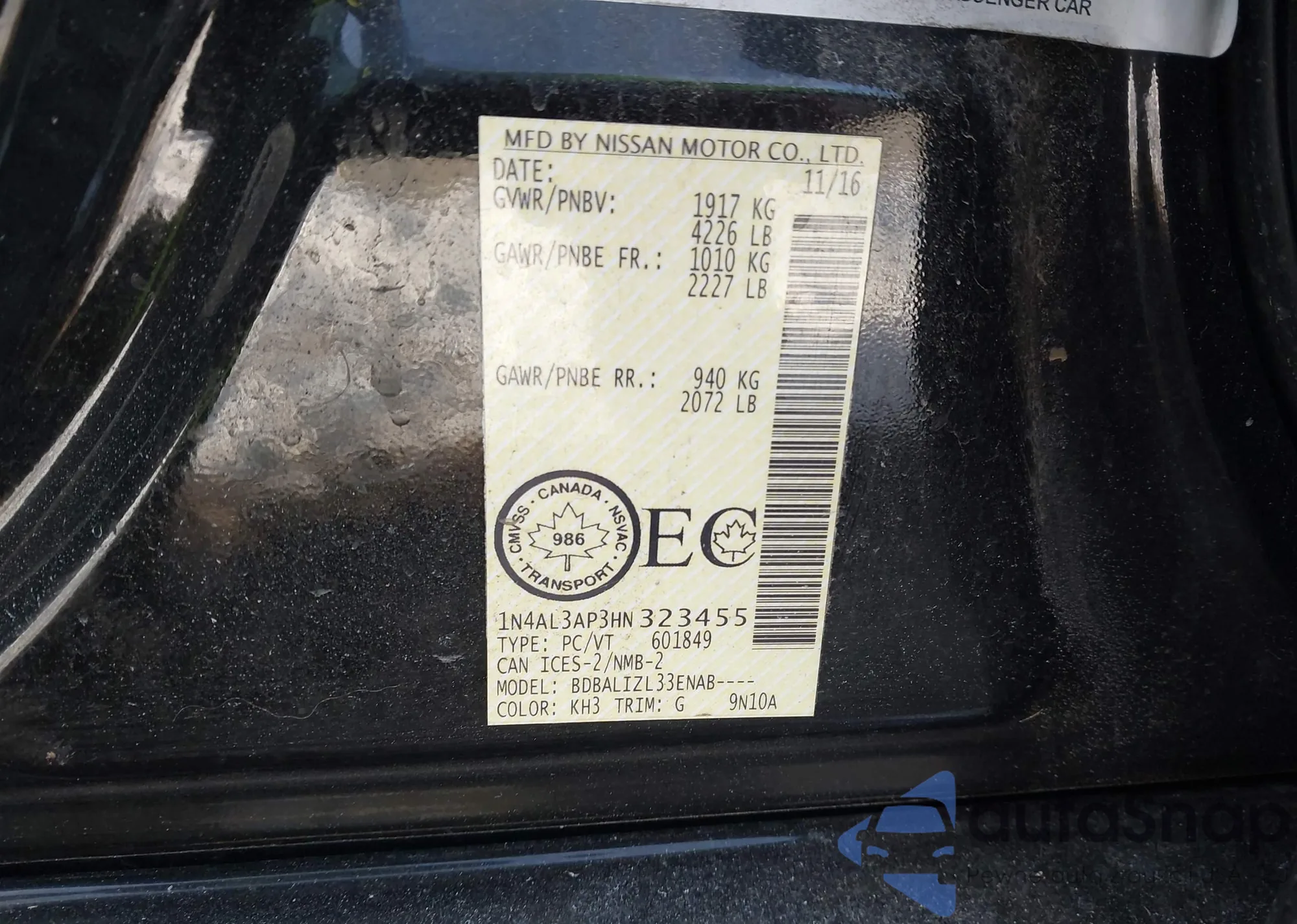 VIN: 1N4AL3AP3HN323455