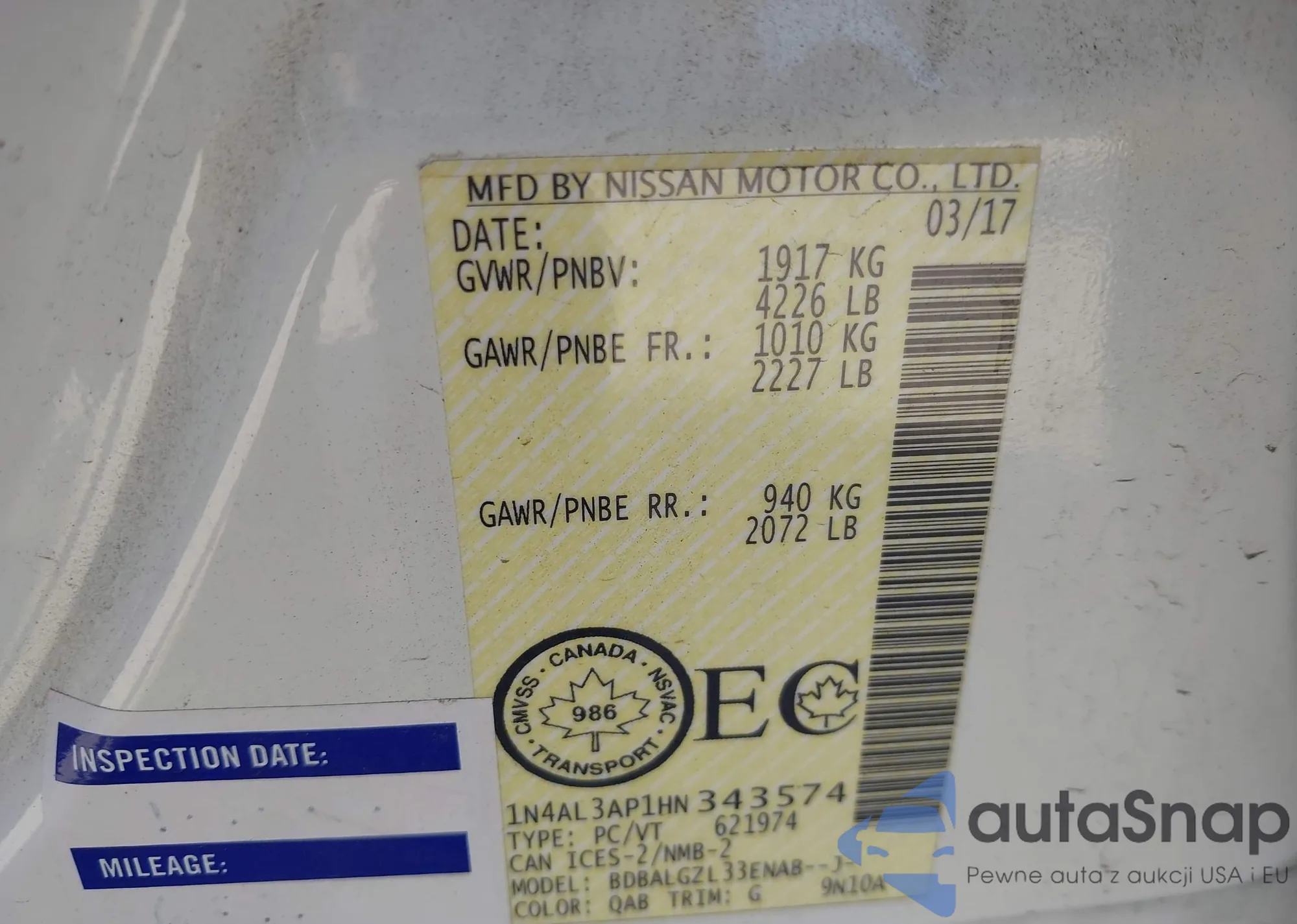 Nissan Altima 2017 – Historia pojazdu (sprzedany na IAAI)