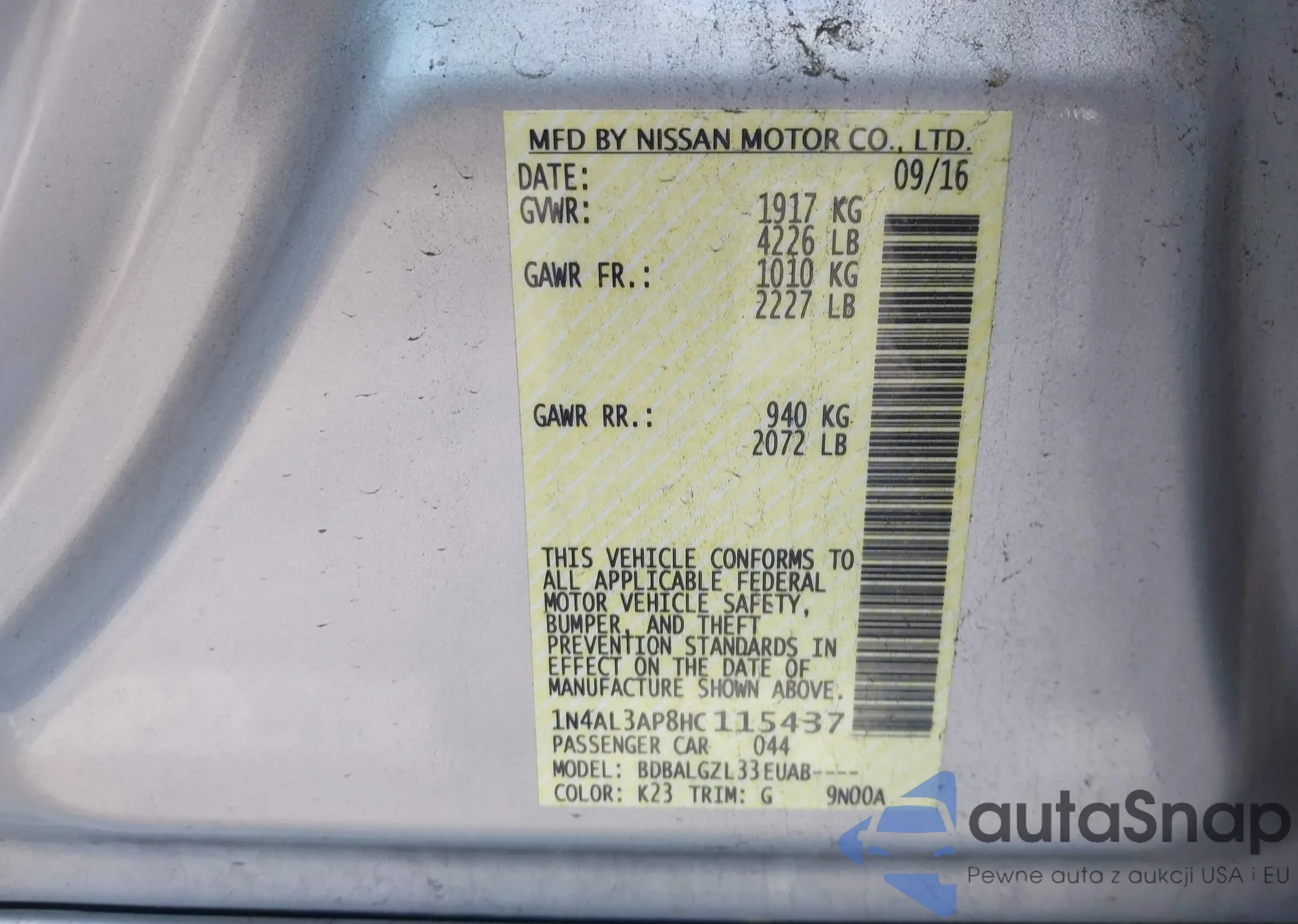 VIN: 1N4AL3AP8HC115437