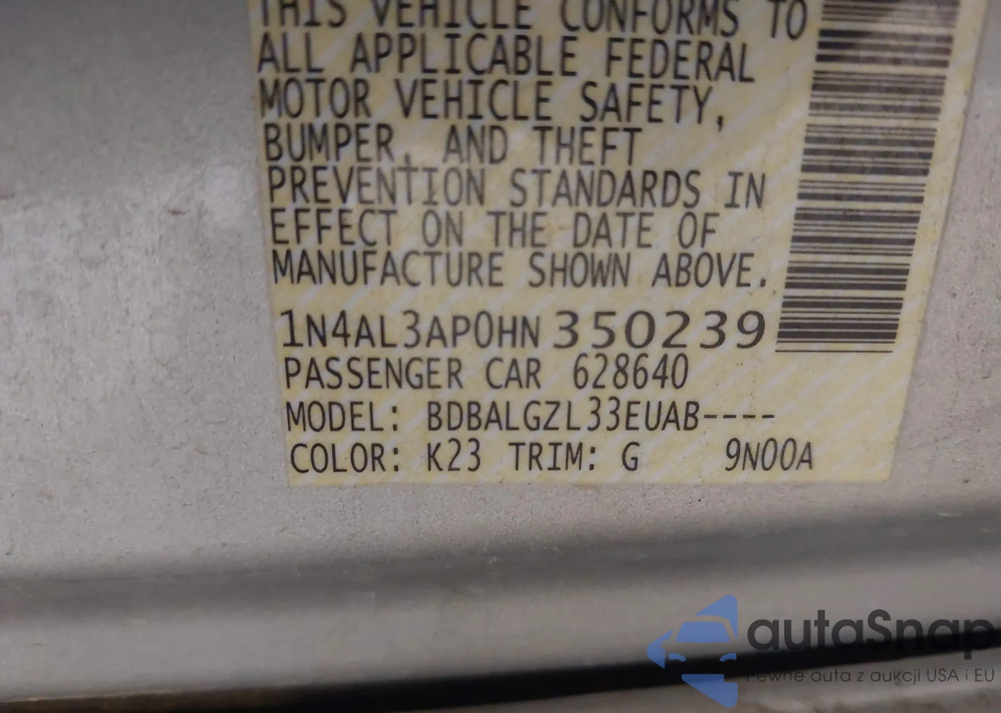 VIN: 1N4AL3AP0HN350239