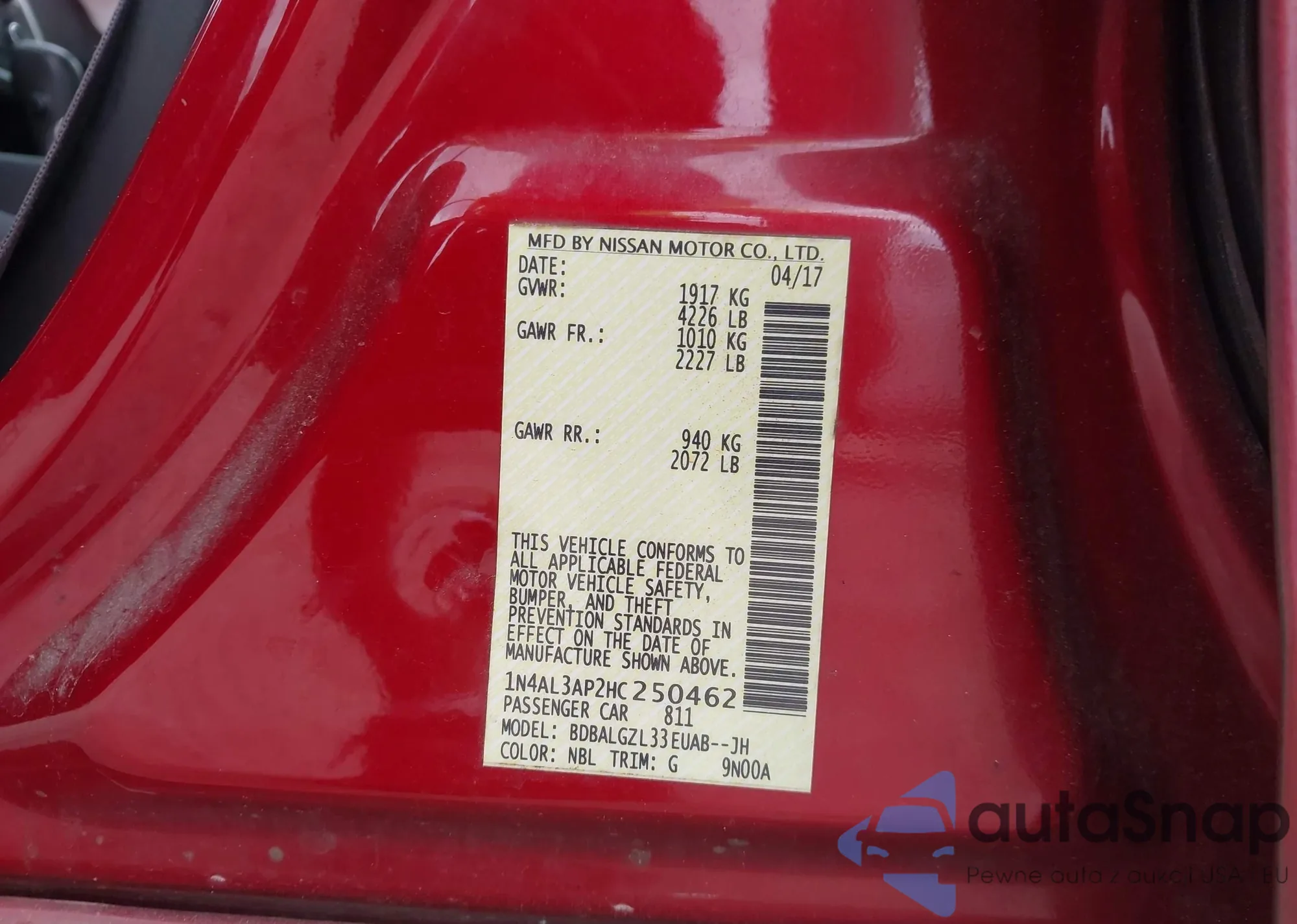 VIN: 1N4AL3AP2HC250462