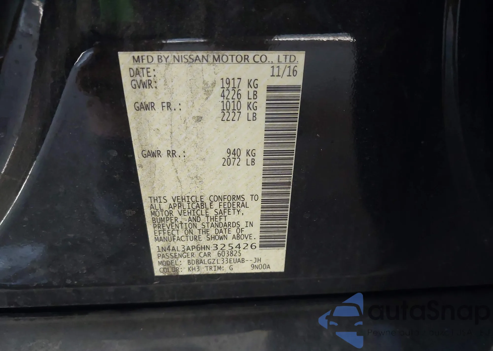 VIN: 1N4AL3AP6HN325426