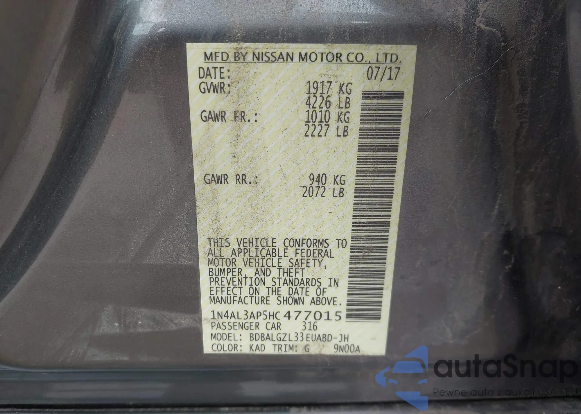 VIN: 1N4AL3AP5HC477015