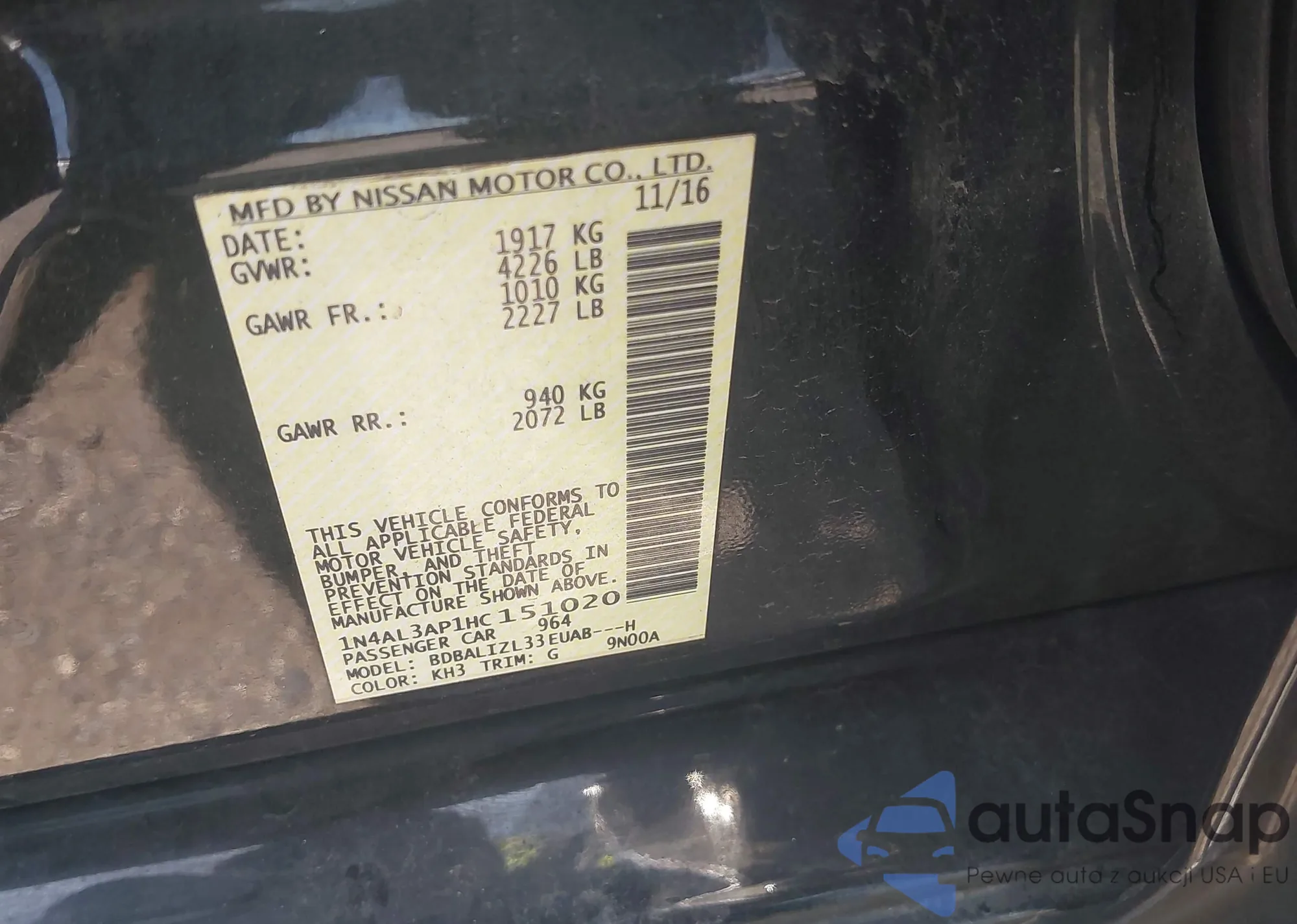 VIN: 1N4AL3AP1HC151020