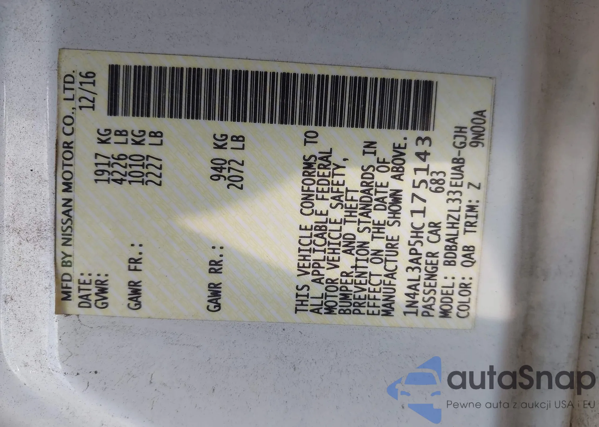 VIN: 1N4AL3AP5HC175143