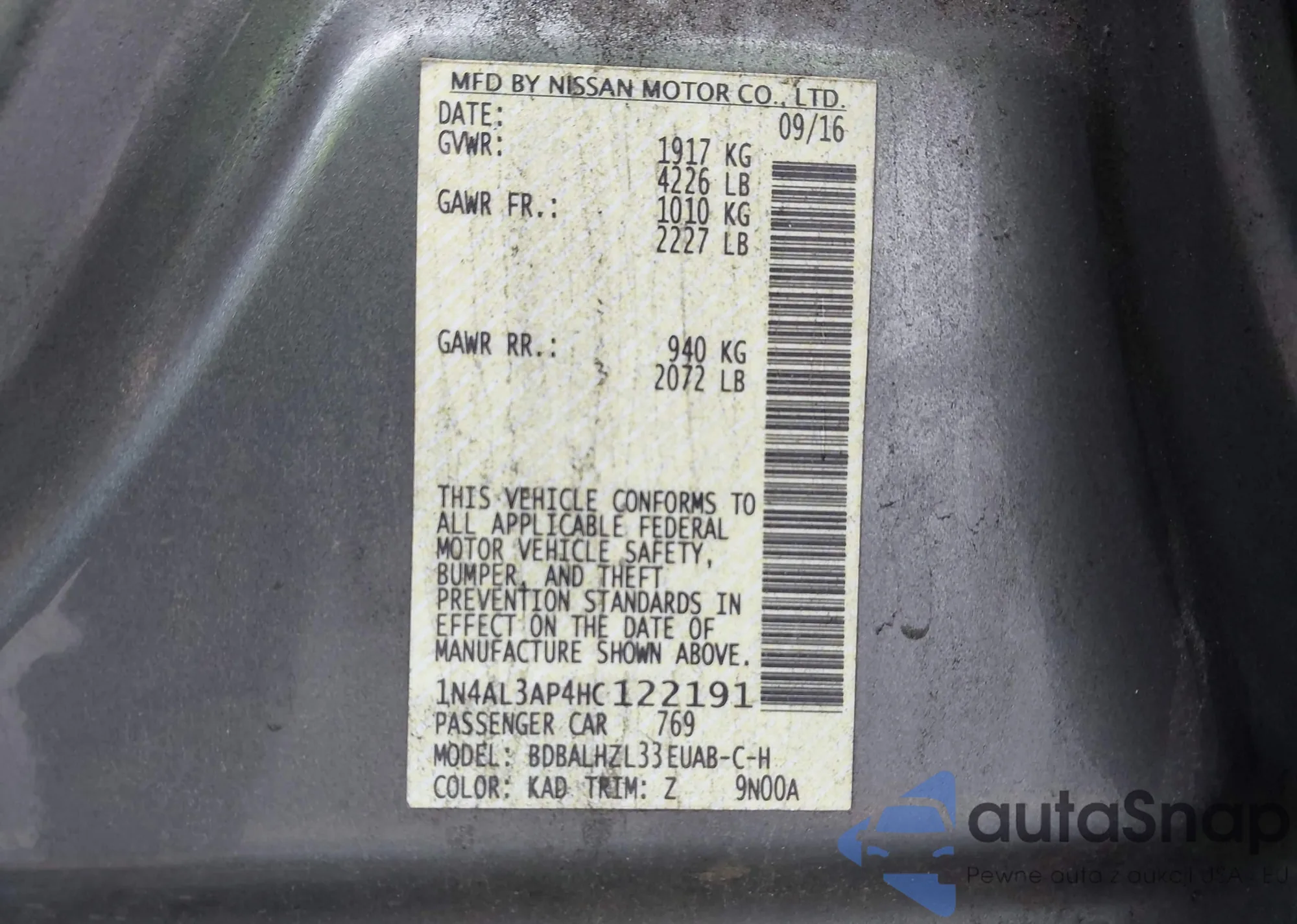 VIN: 1N4AL3AP4HC122191