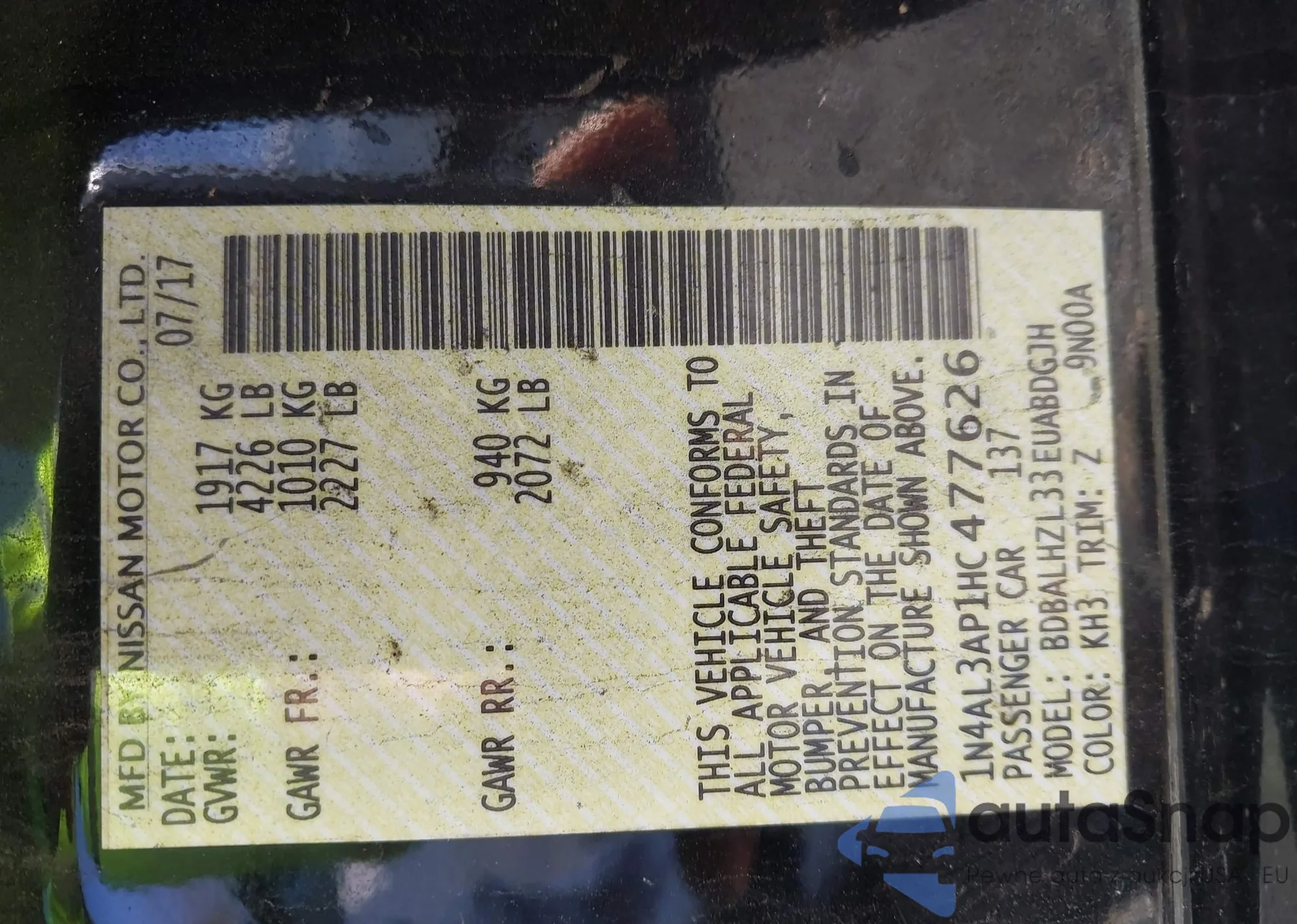 VIN: 1N4AL3AP1HC477626