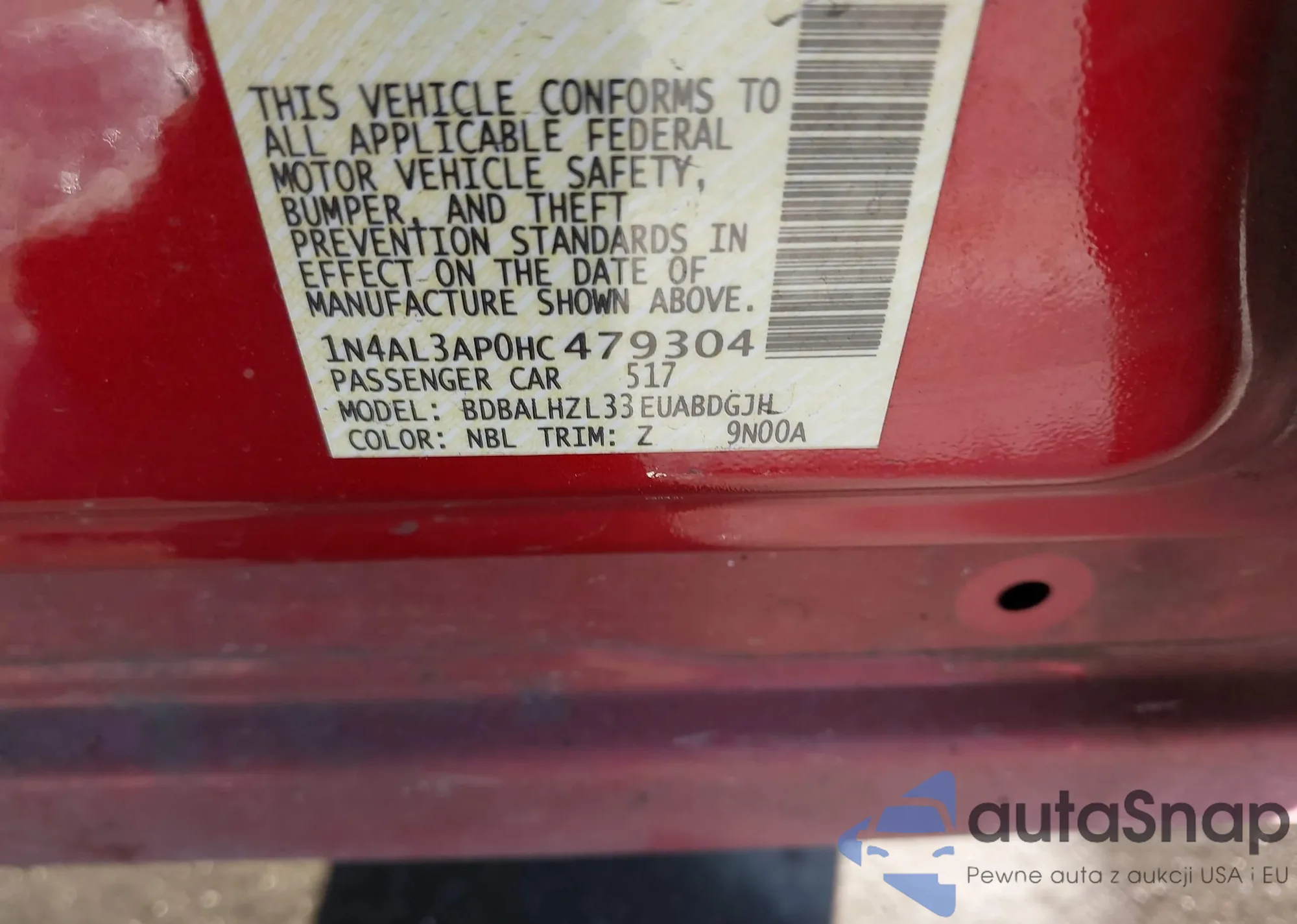 VIN: 1N4AL3AP0HC479304