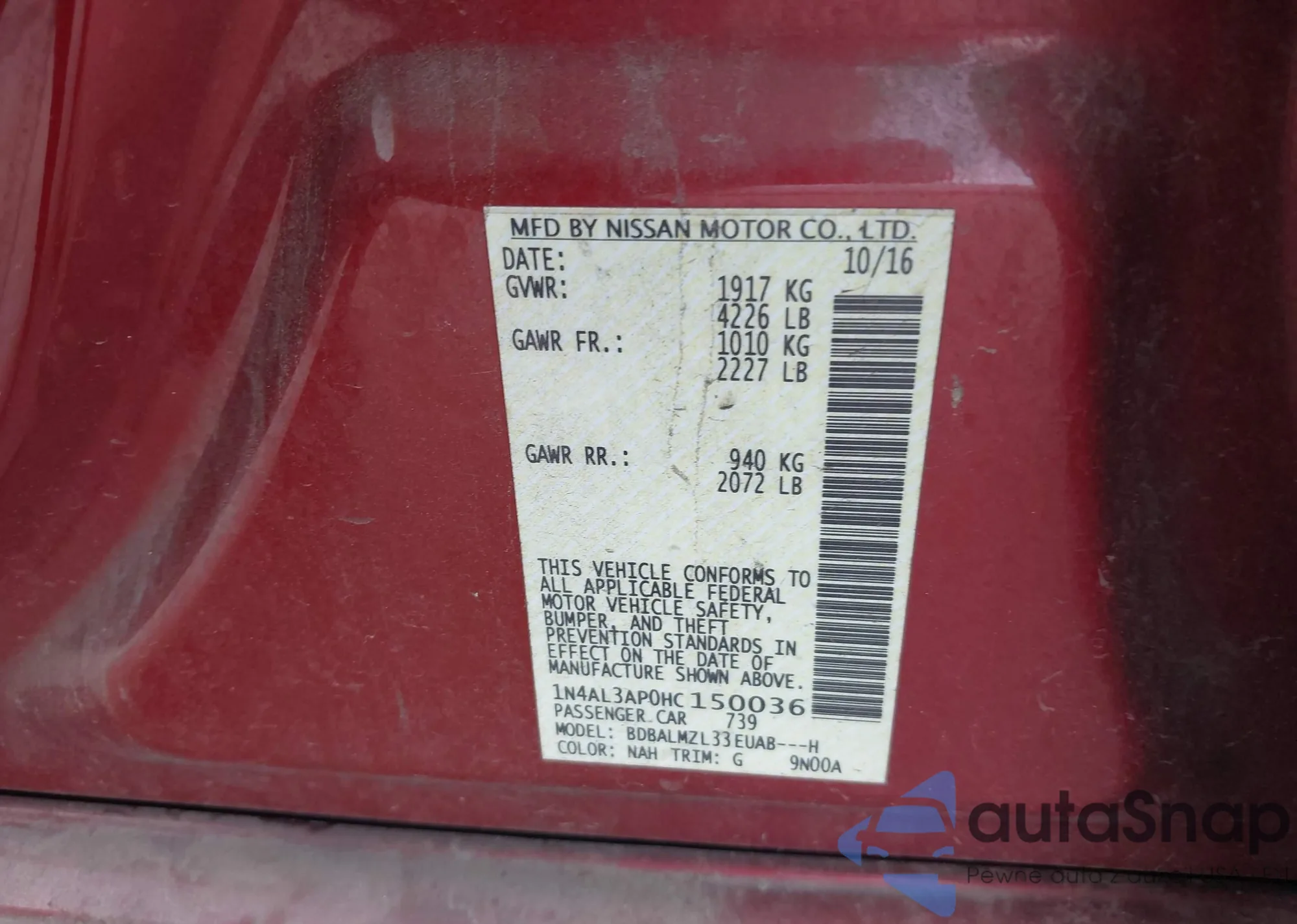 Samochód Nissan Altima 2017 (VIN 1N4AL3AP0HC150036) nie był wcześniej licytowany. Dokumenty są czyste, przebieg odpowiada lub jest niższy niż średnia rynku. Sprzedaje go firma ubezpieczeniowa – polecamy zakup. Dostawa do portu zajmie ok. 6–8 tygodni.