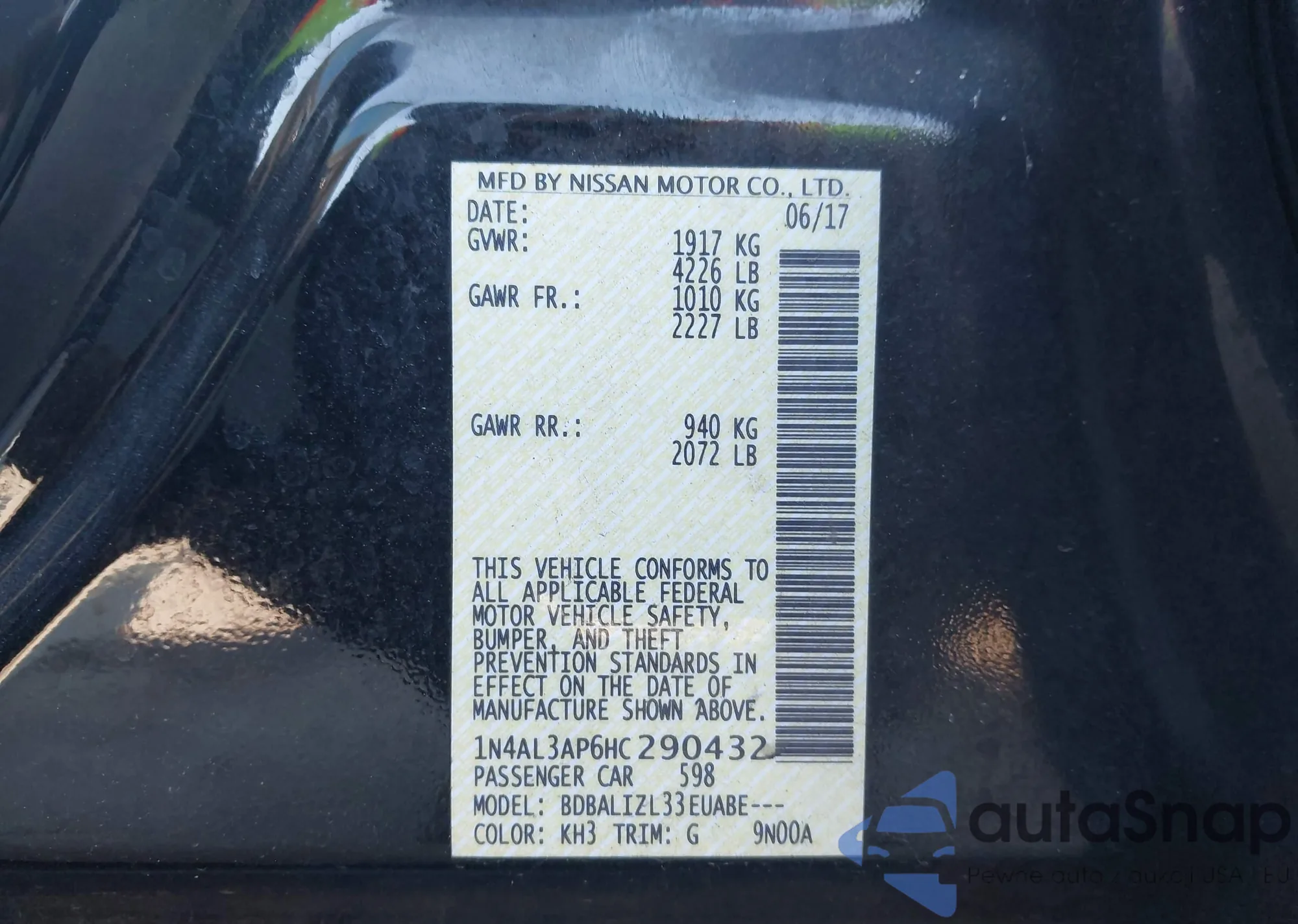 Samochód Nissan Altima 2017 (VIN 1N4AL3AP6HC290432) nie był wcześniej licytowany. Dokumenty są czyste, przebieg odpowiada lub jest niższy niż średnia rynku. Sprzedaje go firma ubezpieczeniowa – polecamy zakup. Dostawa do portu zajmie ok. 6–8 tygodni.