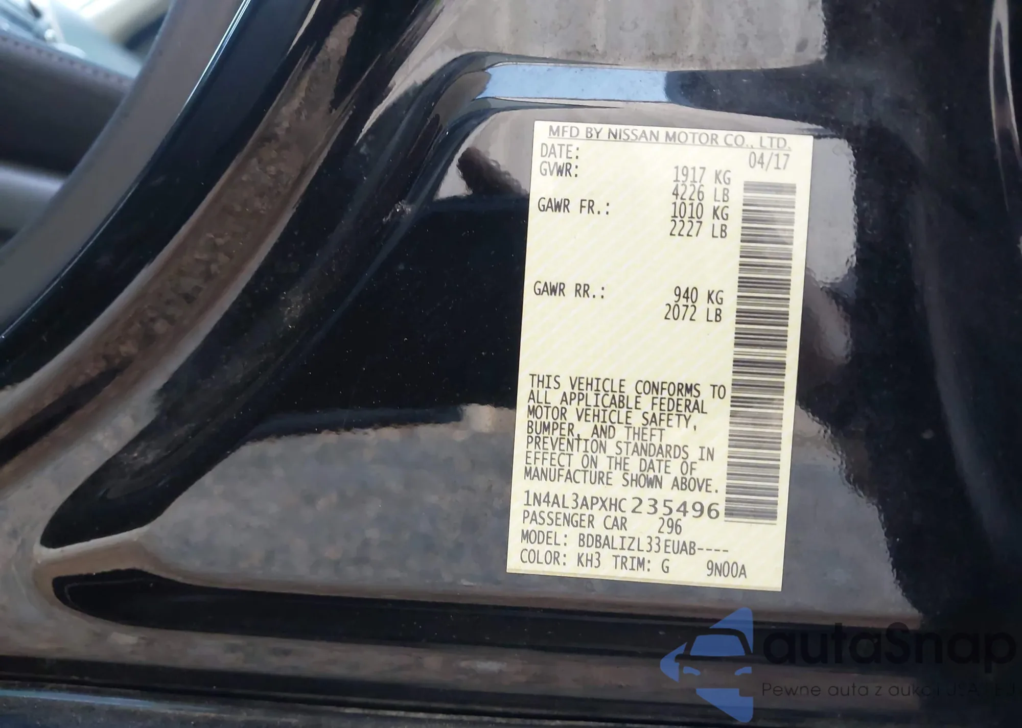 VIN: 1N4AL3APXHC235496