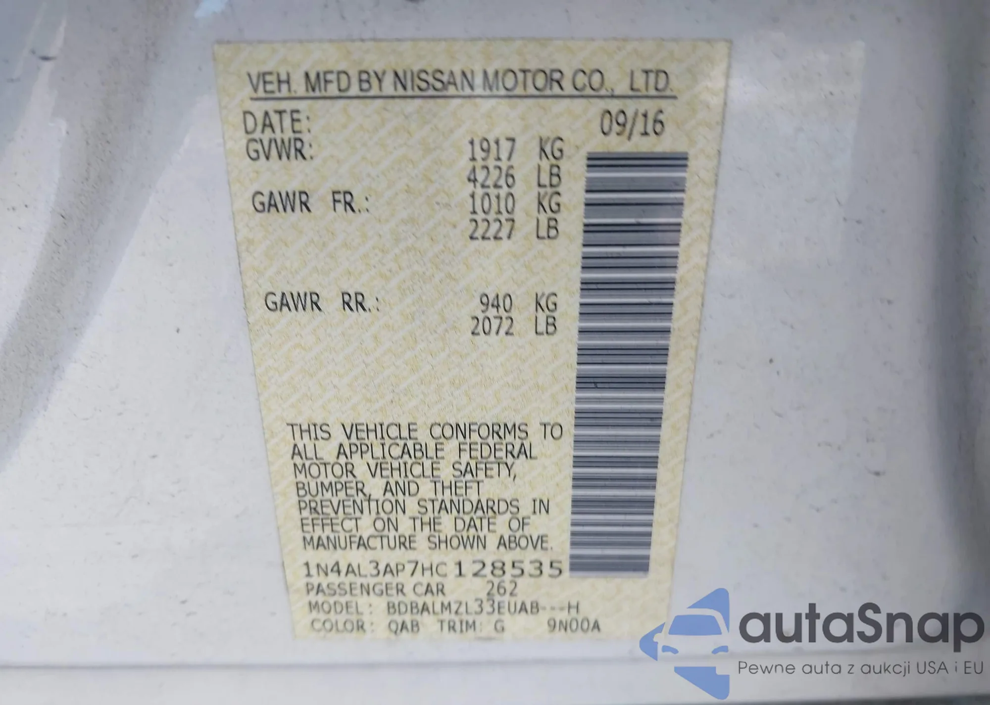 VIN: 1N4AL3AP7HC128535