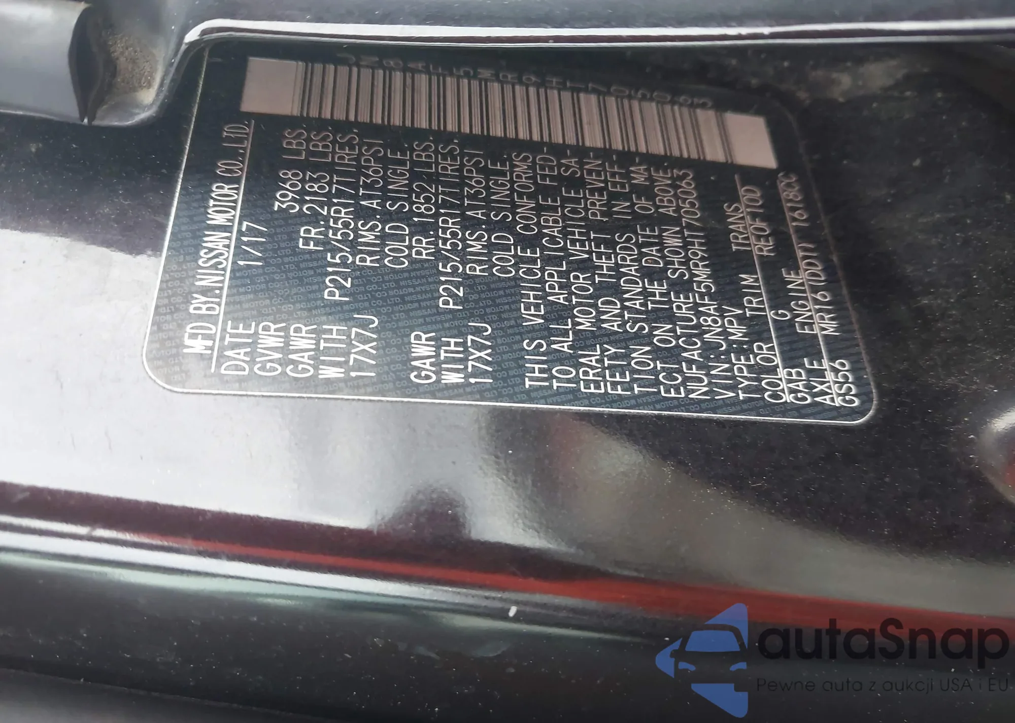 • VIN: JN8AF5MR9HT705063