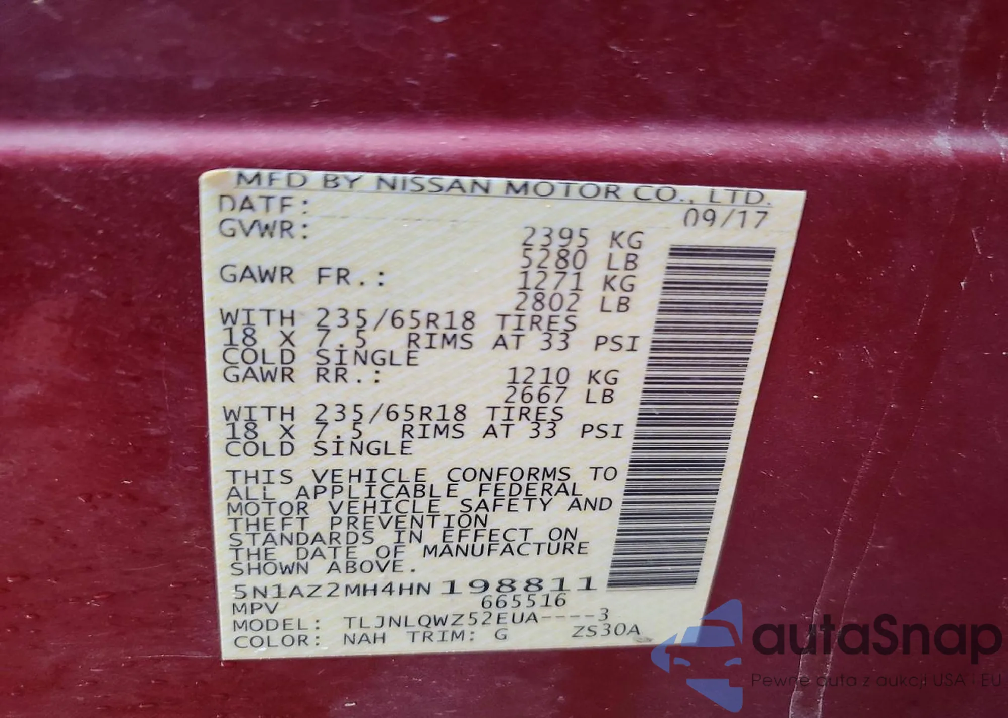 Samochód Nissan Murano 2017 (VIN 5N1AZ2MH4HN198811) sprzedaje go niezweryfikowany sprzedawca. Zalecamy raport Carfax i potwierdzenie możliwości rejestracji pojazdu przed zakupem.