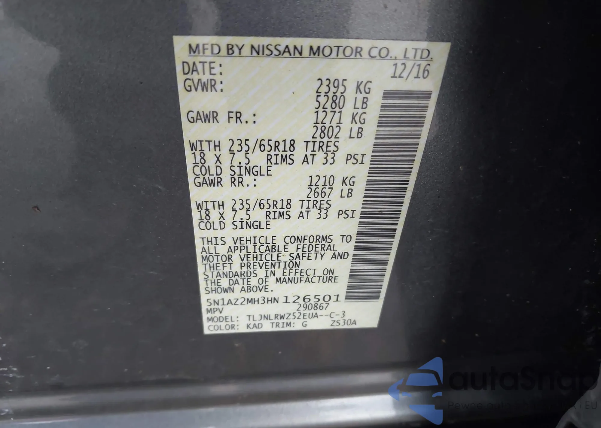 VIN: 5N1AZ2MH3HN126501