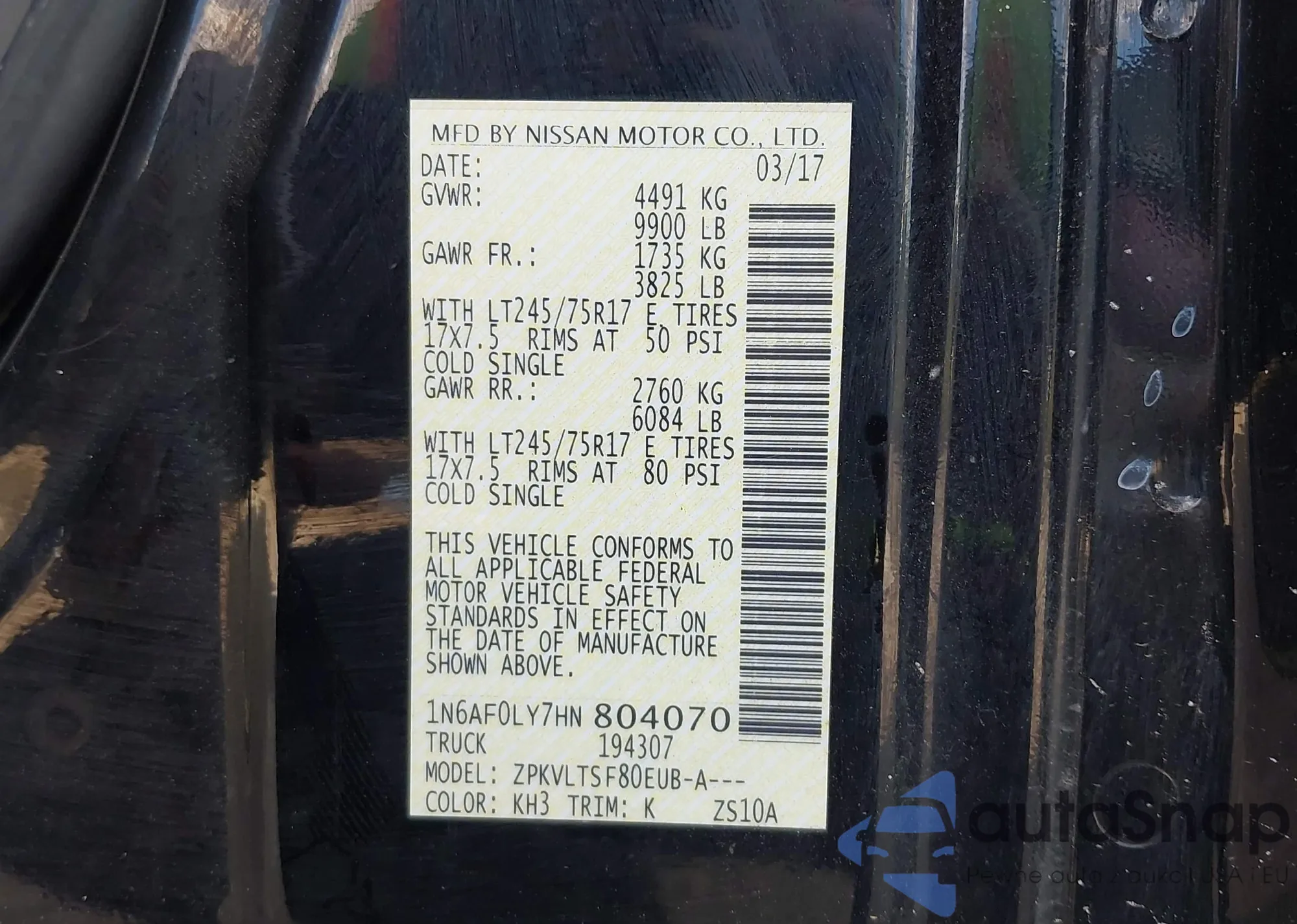 VIN: 1N6AF0LY7HN804070