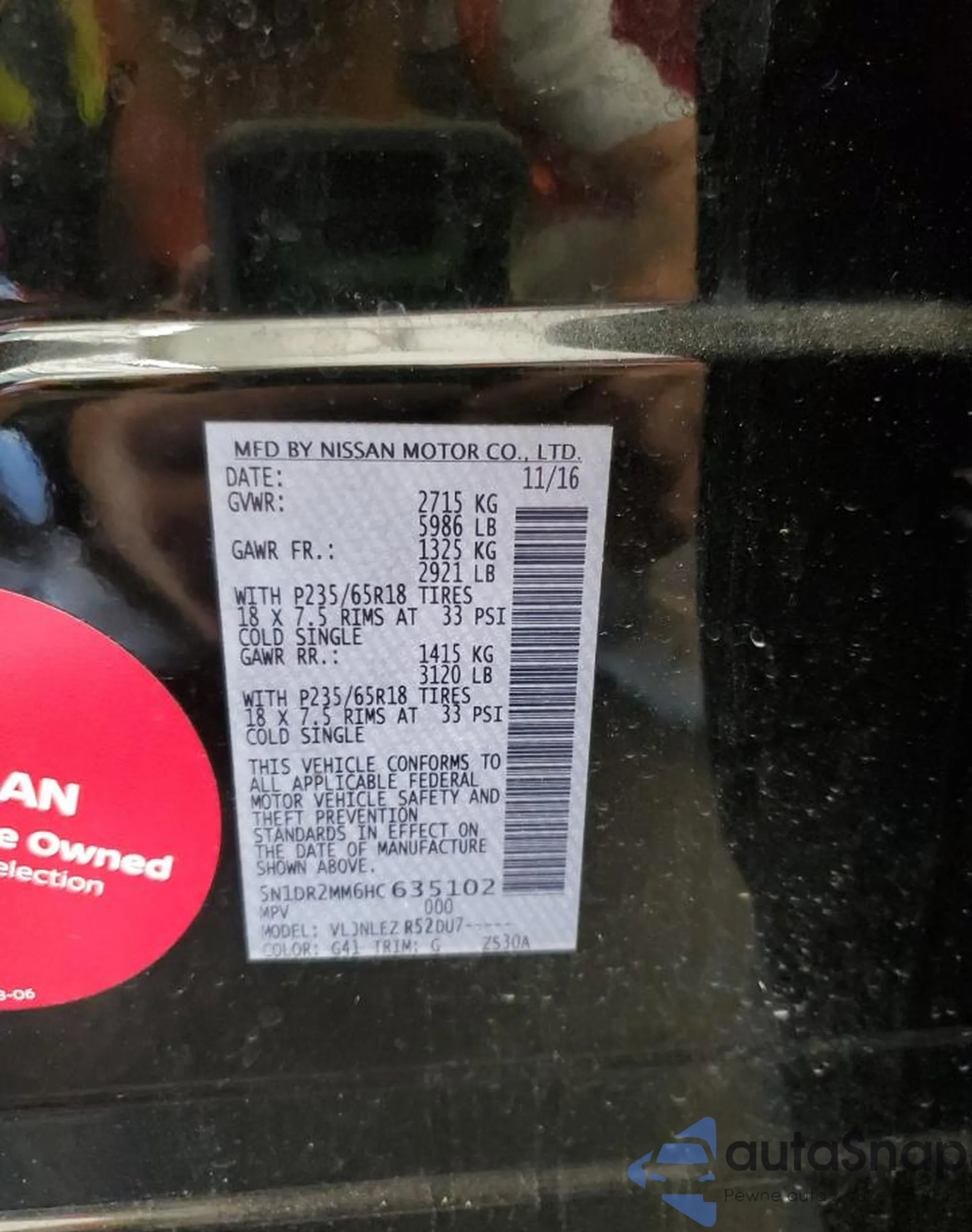 Samochód Nissan Pathfinder 2017 (VIN 5N1DR2MM6HC635102) sprzedaje go niezweryfikowany sprzedawca. Zalecamy raport Carfax i potwierdzenie możliwości rejestracji pojazdu przed zakupem.
