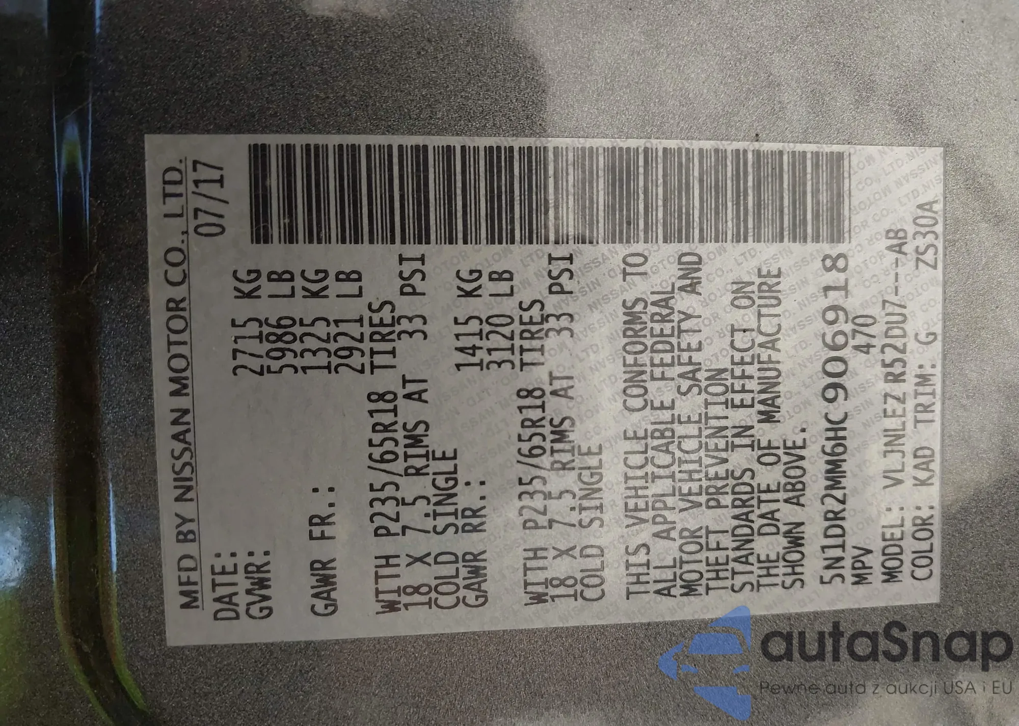 VIN: 5N1DR2MM6HC906918