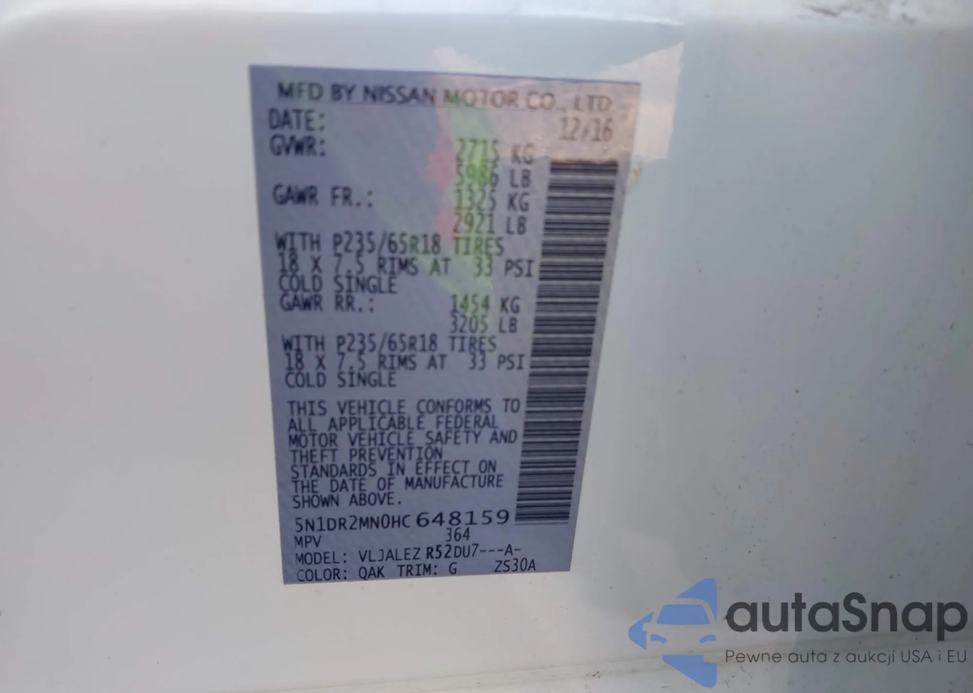VIN: 5N1DR2MN0HC648159