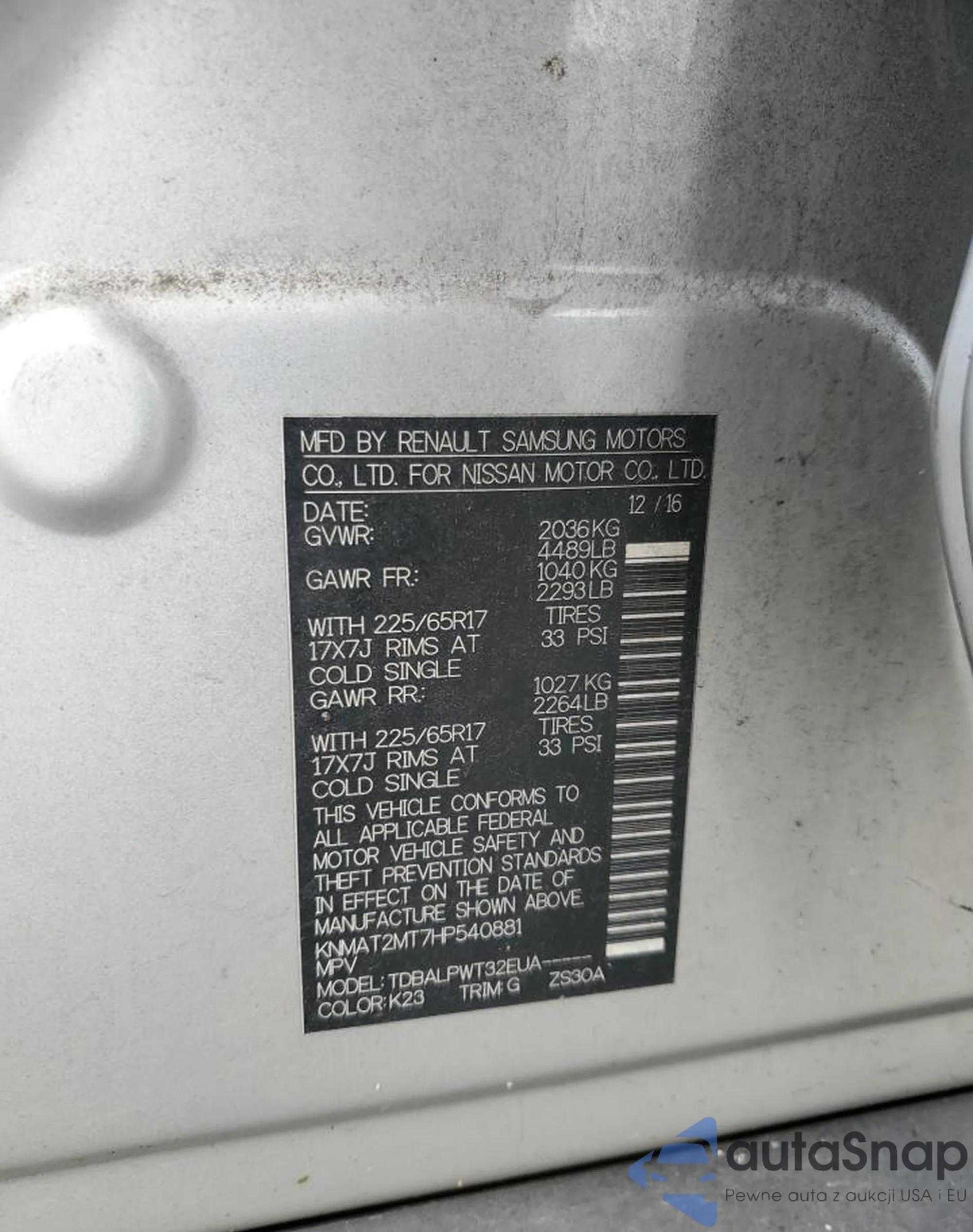 Nissan Rogue 2017 – Historia pojazdu (sprzedany na COPART)