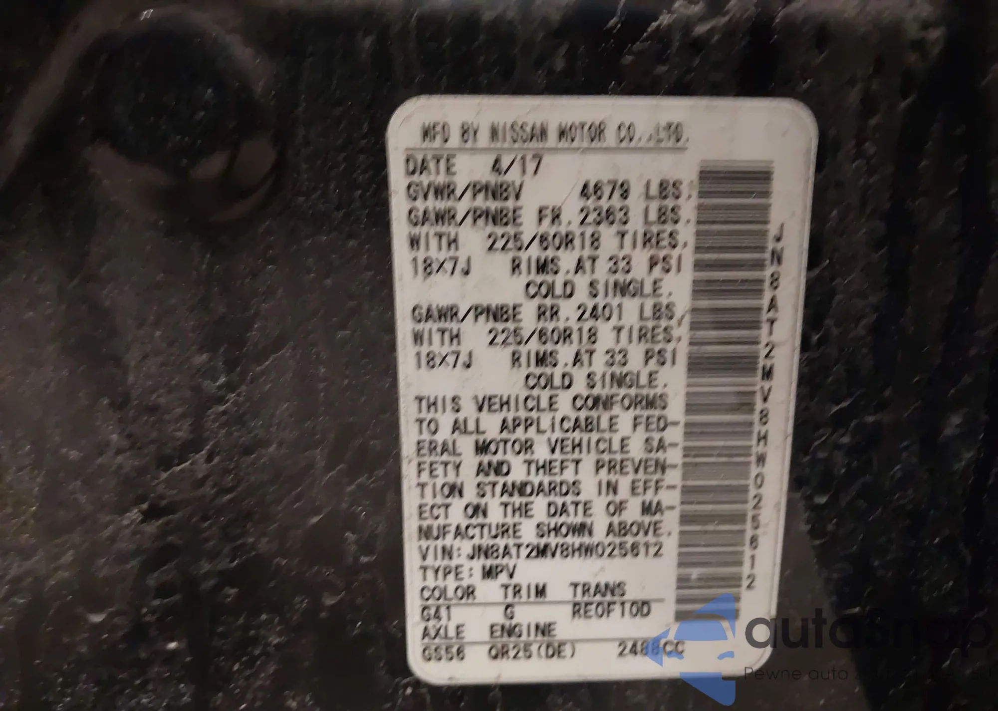 Samochód Nissan Rogue 2017 (VIN JN8AT2MV8HW025612) nie był wcześniej licytowany. Dokumenty są czyste, przebieg odpowiada lub jest niższy niż średnia rynku. Sprzedaje go firma ubezpieczeniowa – polecamy zakup. Dostawa do portu zajmie ok. 6–8 tygodni.