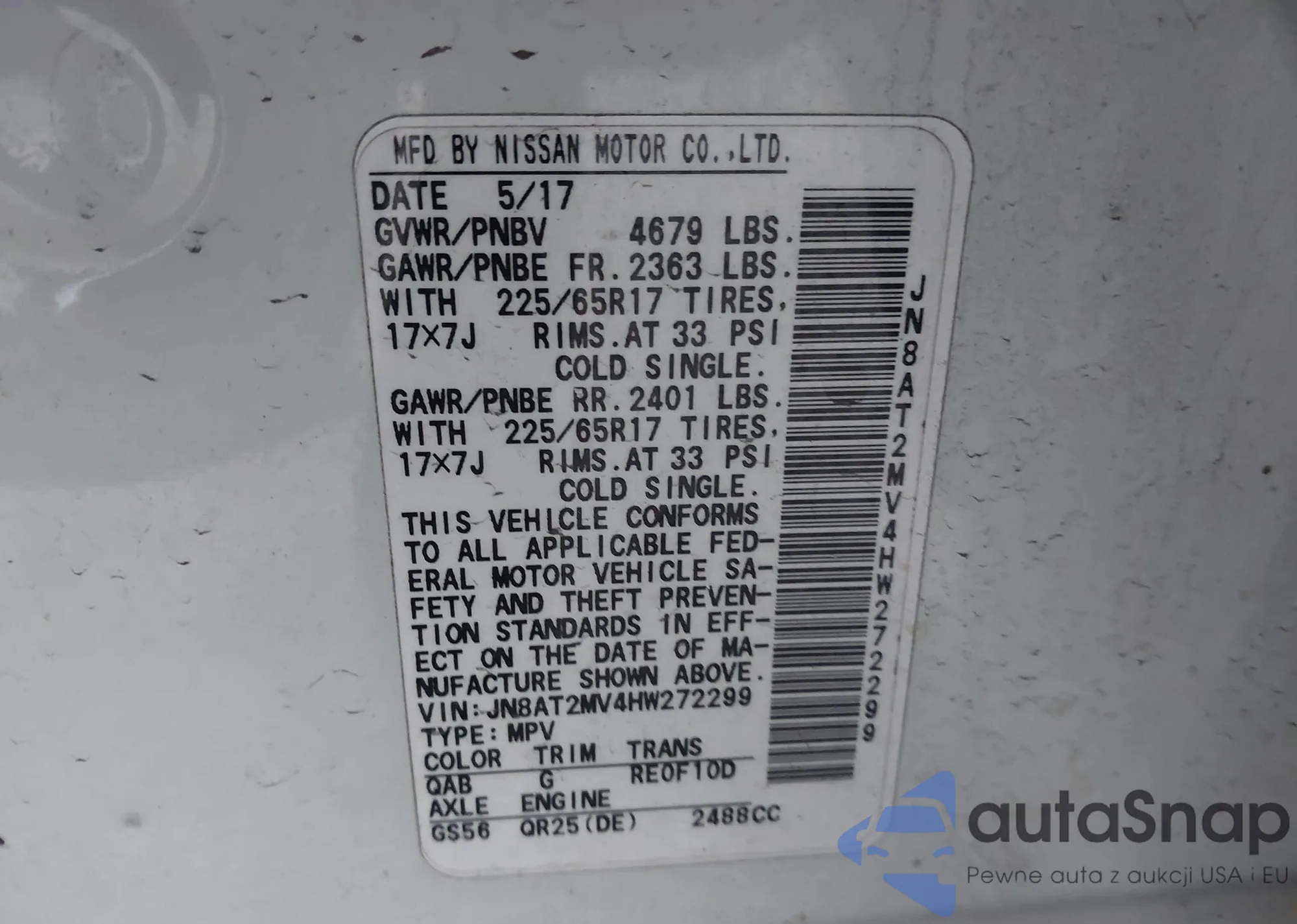 • VIN: JN8AT2MV4HW272299