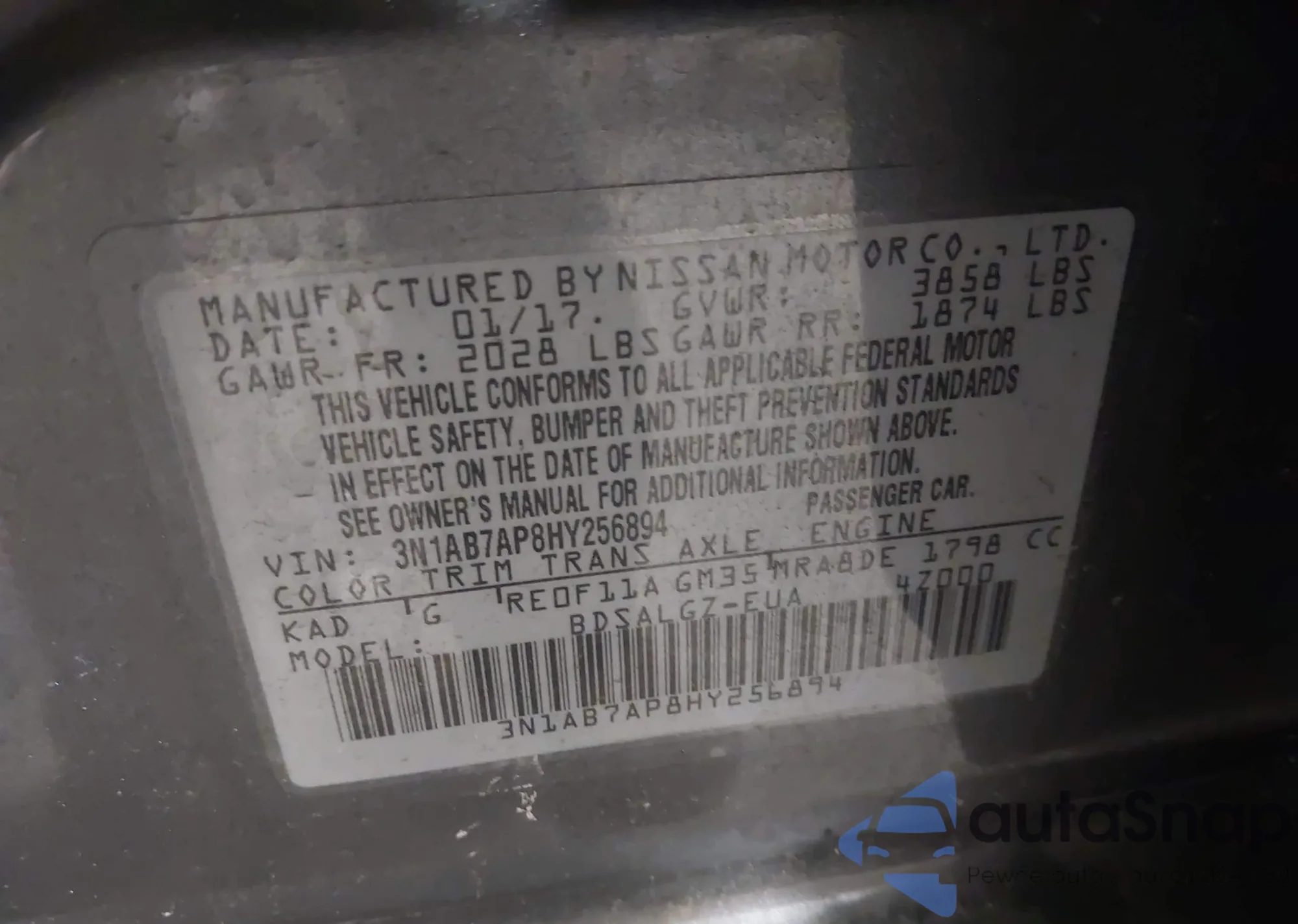 VIN: 3N1AB7AP8HY256894