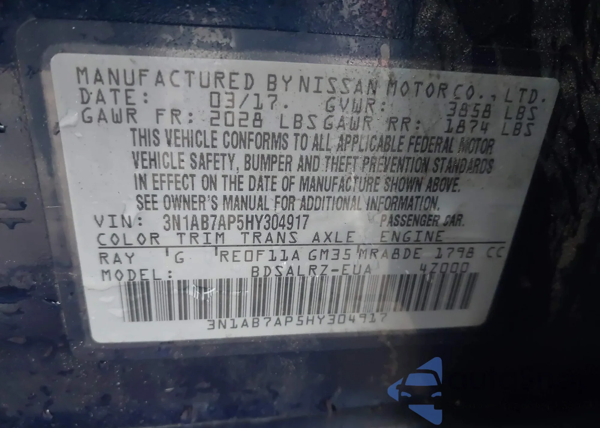 VIN: 3N1AB7AP5HY304917