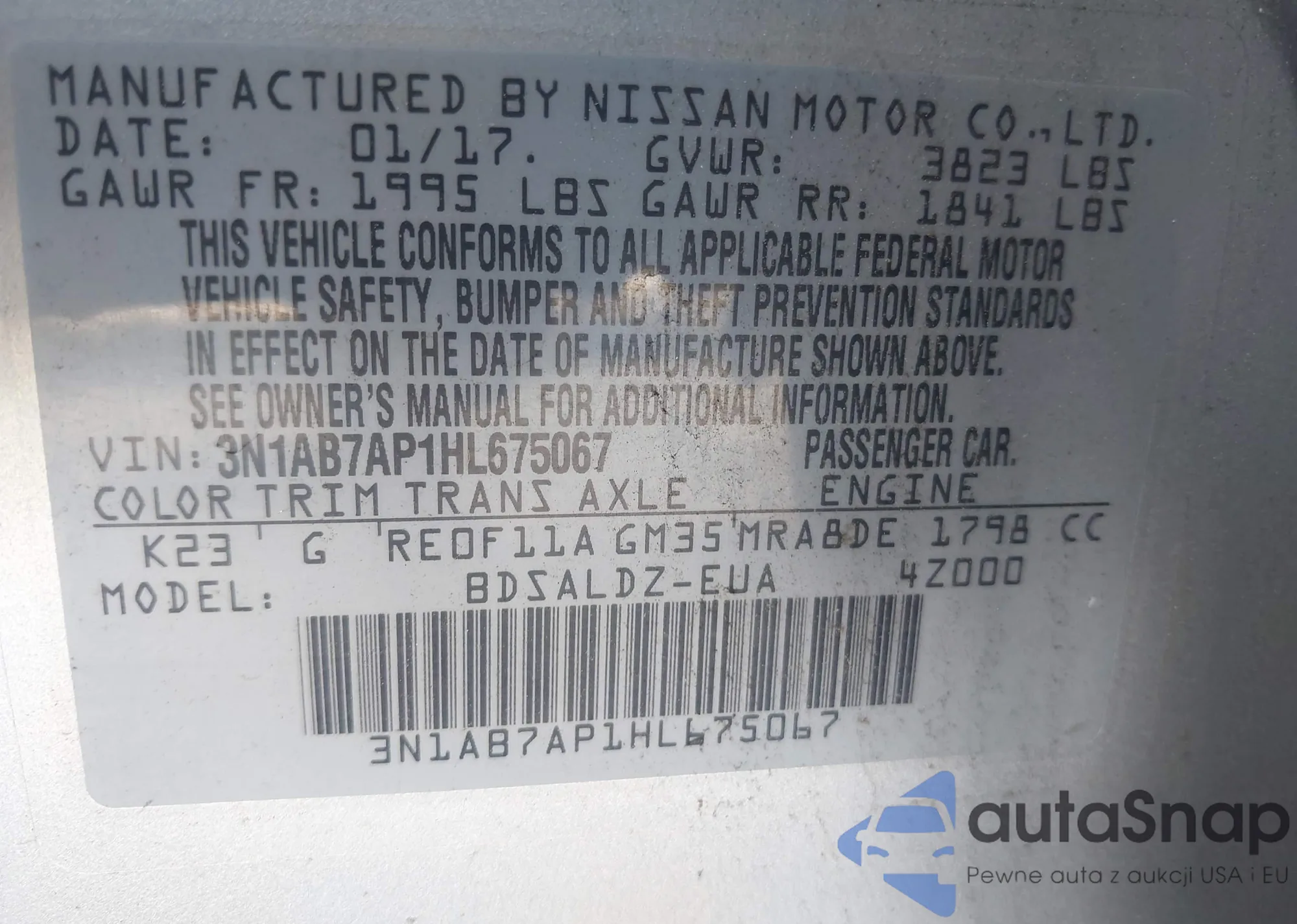 VIN: 3N1AB7AP1HL675067