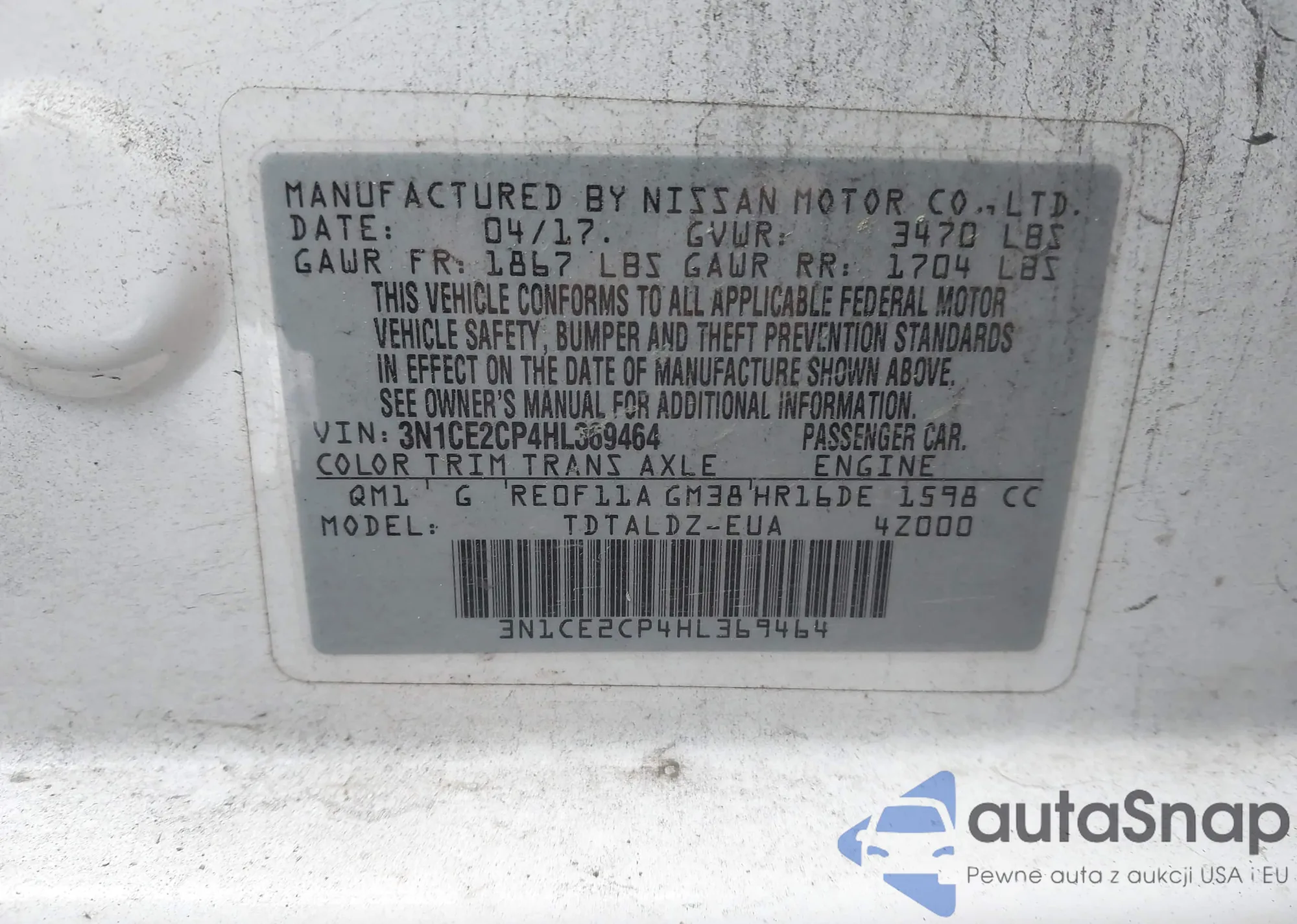 VIN: 3N1CE2CP4HL369464