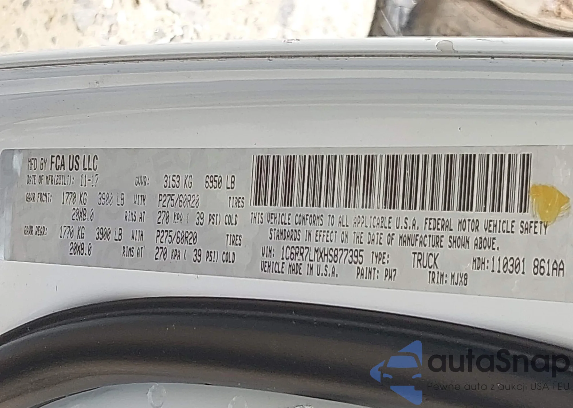 VIN: 1C6RR7LMXHS877395