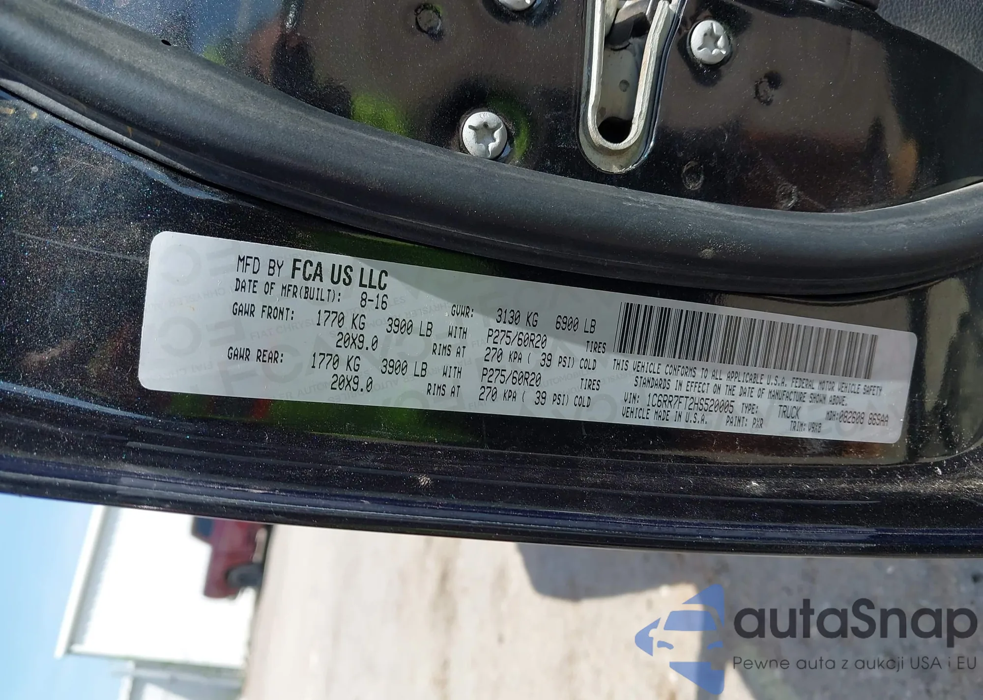 Samochód RAM 1500 2017 (VIN 1C6RR7FT2HS520005) nie był wcześniej licytowany. Dokumenty są czyste, przebieg odpowiada lub jest niższy niż średnia rynku. Sprzedaje go firma ubezpieczeniowa – polecamy zakup. Dostawa do portu zajmie ok. 6–8 tygodni.