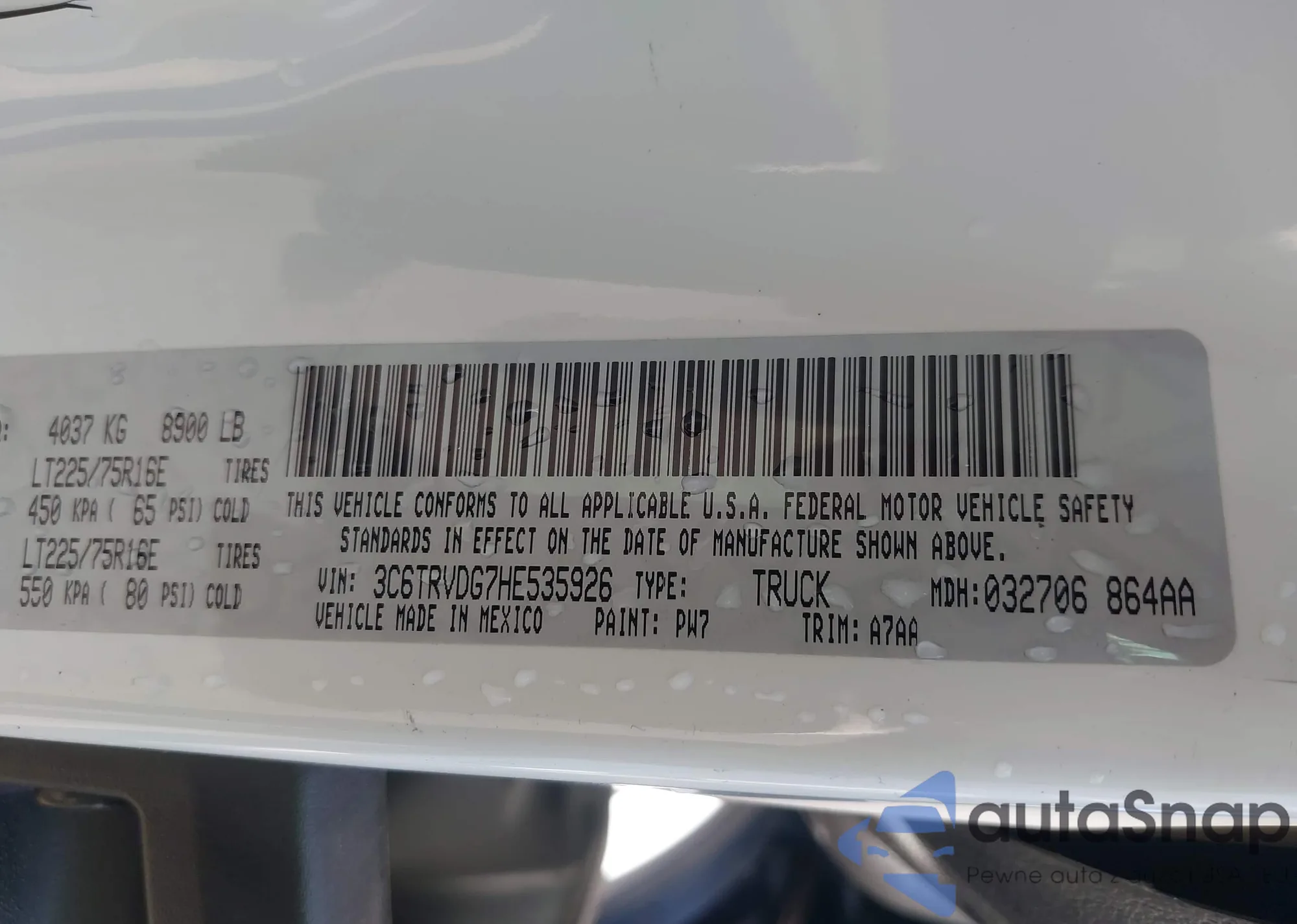 VIN: 3C6TRVDG7HE535926