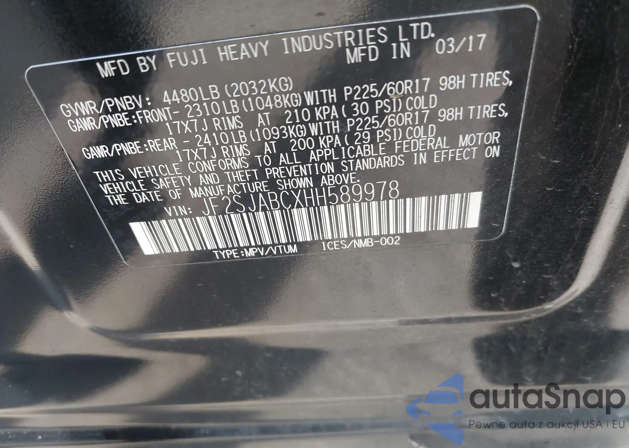 VIN: JF2SJABCXHH589978