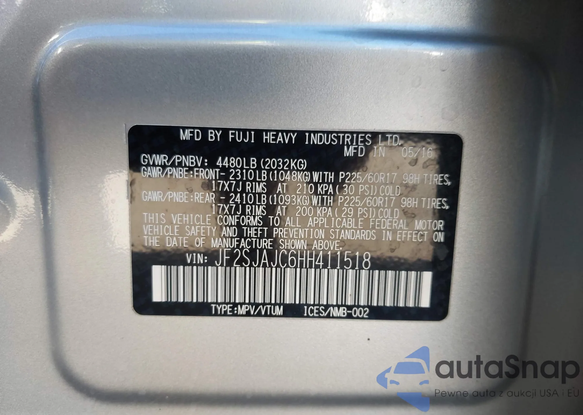 VIN: JF2SJAJC6HH411518