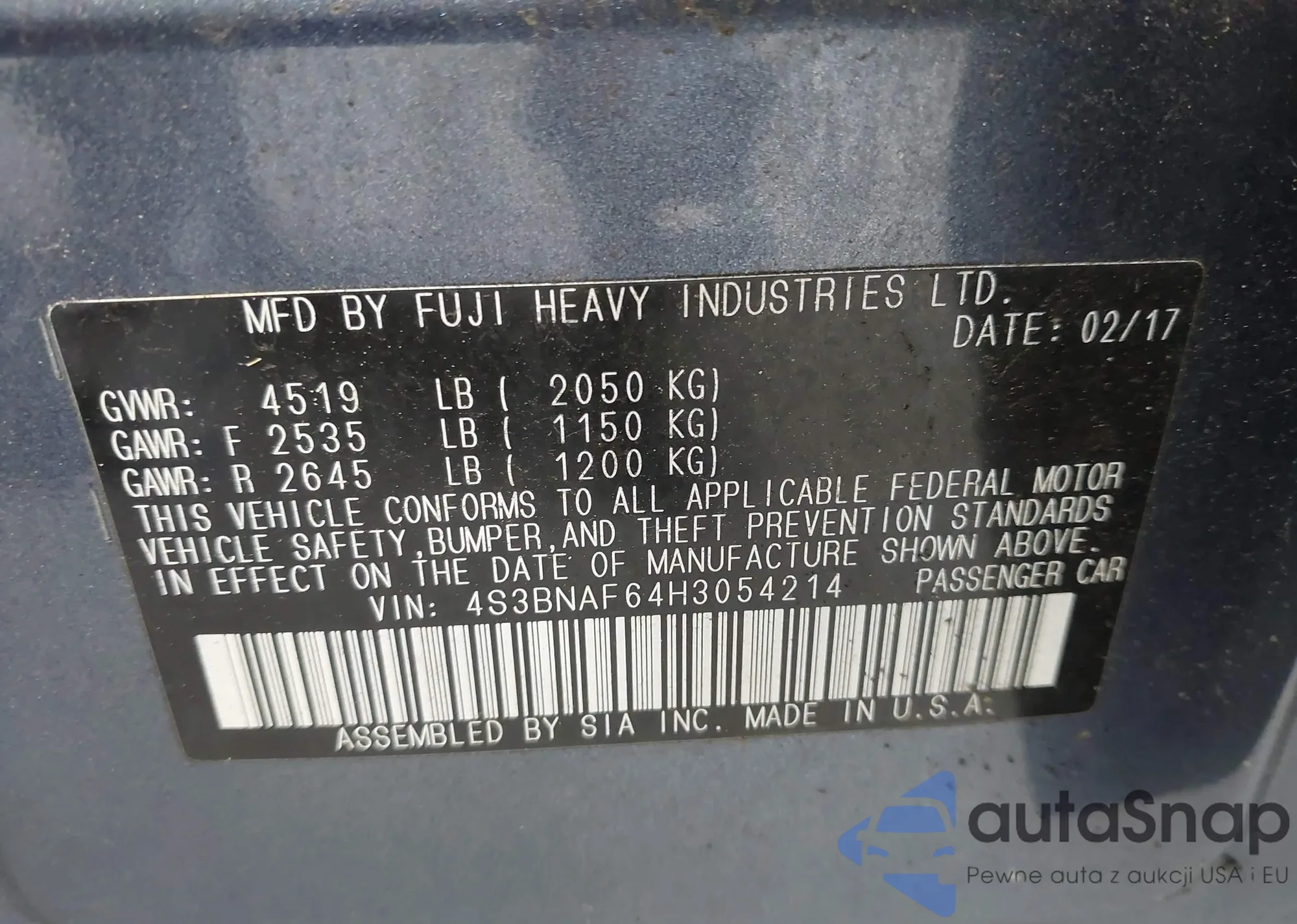 VIN: 4S3BNAF64H3054214